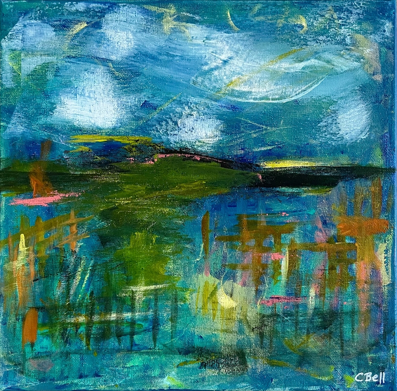 This beautiful shimmering abstract landscape/seascape is full of atmosphere, and impressions of light at night. Inspired by the peaceful yet vibrant feeling before darkness falls completely, the air tingling with both anticipation, magic, and nighttime sounds.