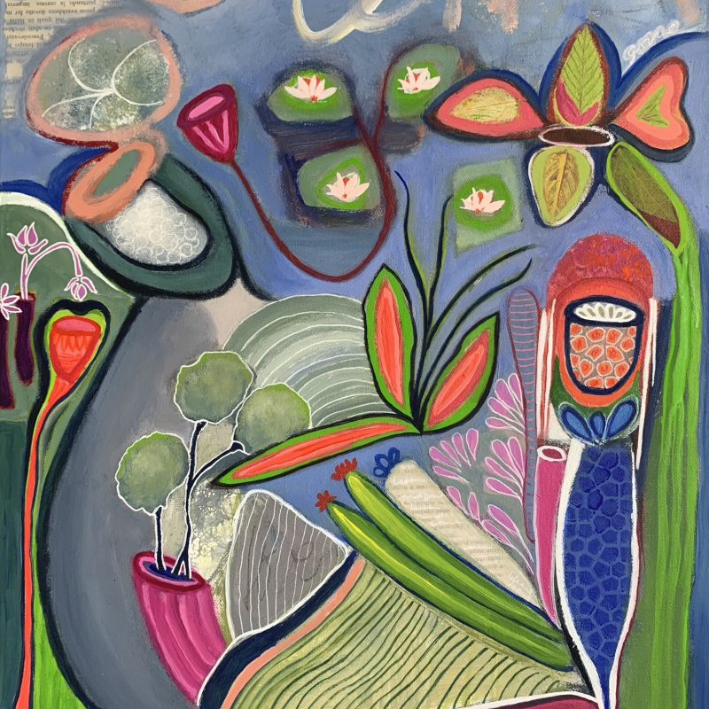 The artist’s textural brushstrokes capture the fluidity and movement.