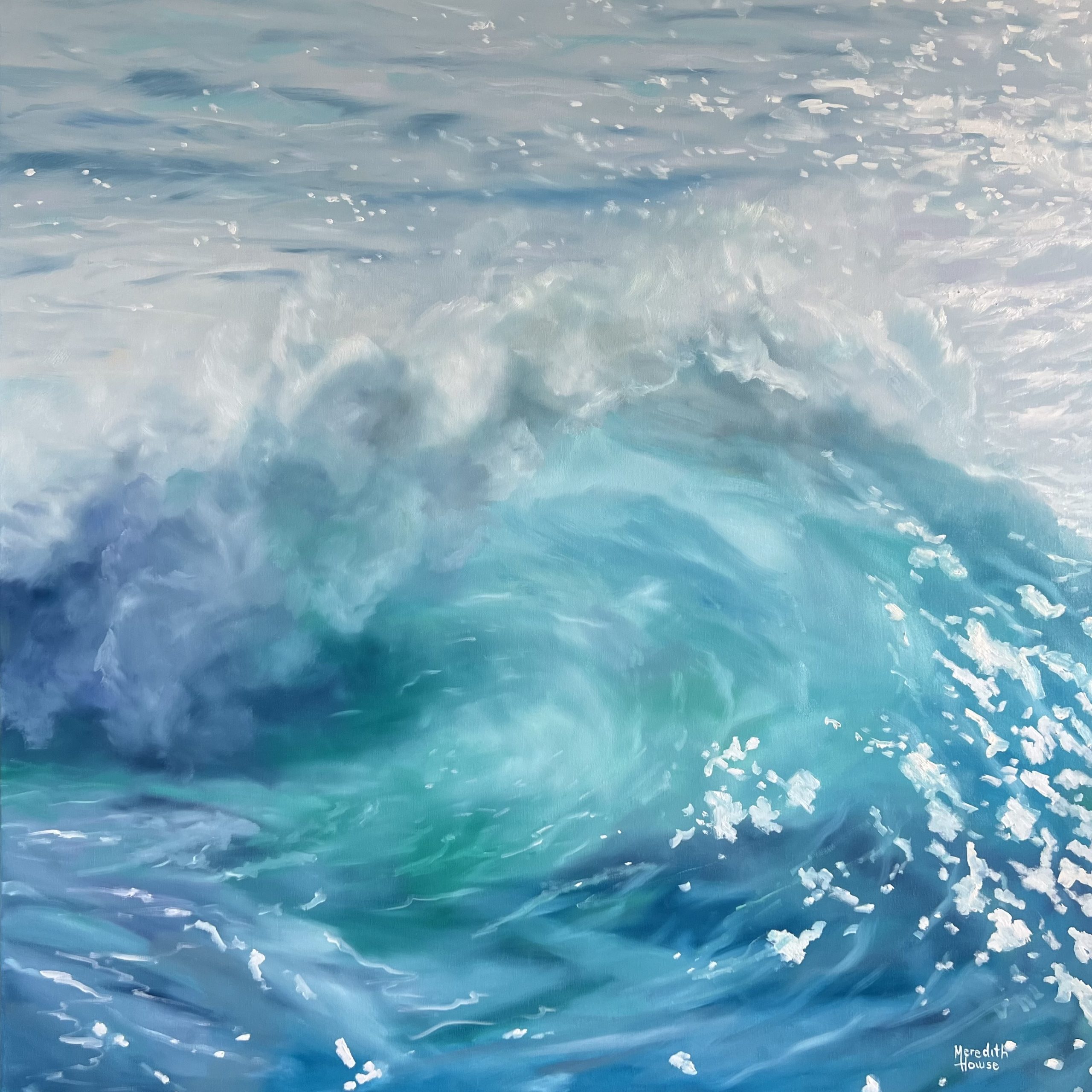 In Shimmering Surf, artist Meredith Howse harnesses the power of a breaking wave, immortalising its raw energy and vibrant beauty on canvas. With the use of artist-quality oil paint, Howse masterfully brings forth the captivating nature of this natural phenomenon, showcasing the true power and magnificence of the ocean.