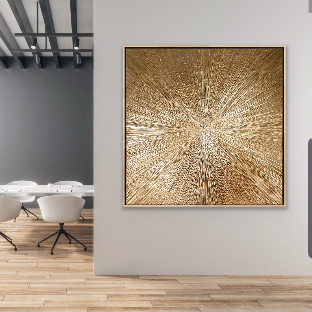 This piece is made by layering modeling paste on canvas and painting with high quality metallic gold spray paint in 24k gold colour.