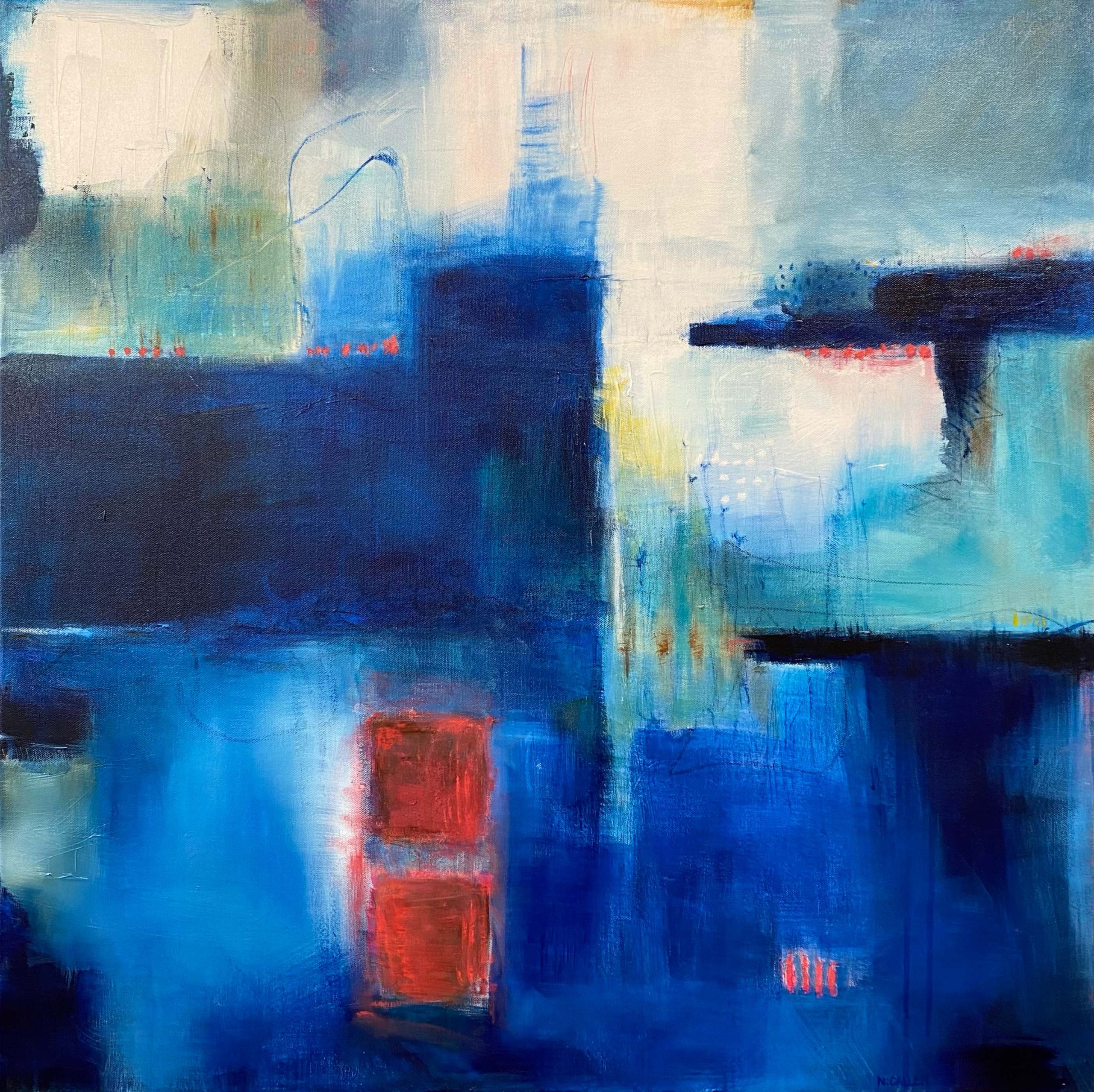 Shipping News by Narelle Callen is an abstract seascape interpreting the deep sea harbours and docks from an aerial view.