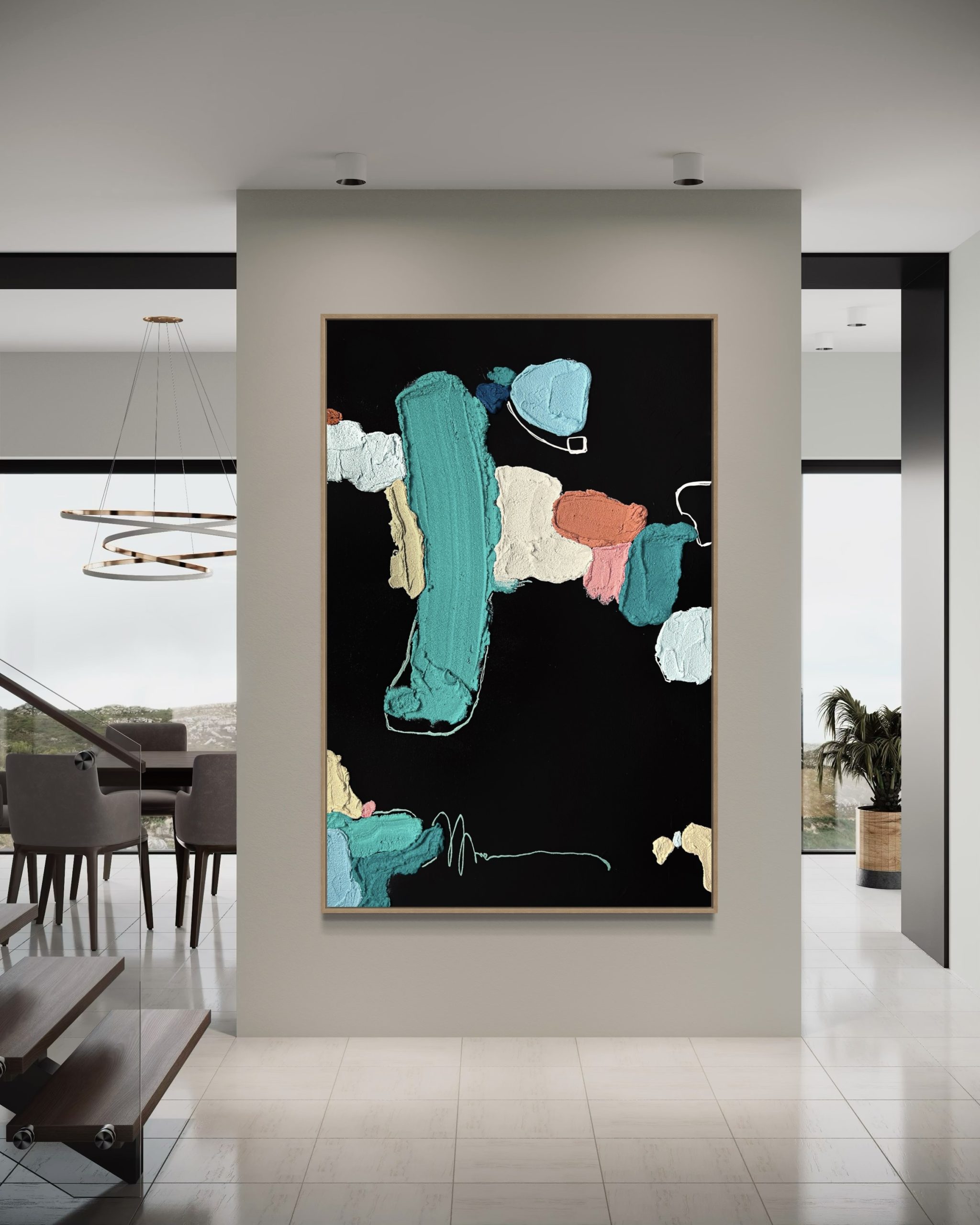 Piece comes ready to hang and the total size is W190cm H140cm weight 7kg. (Floating Frame not Included).