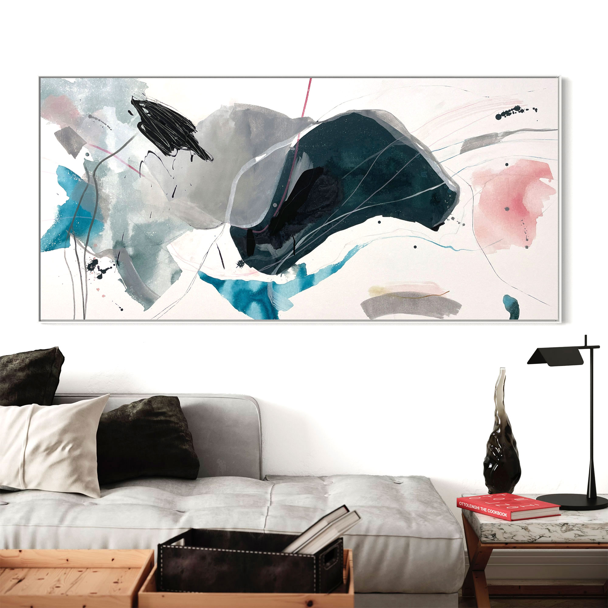 Inspired by a love of the ocean this piece combines complex mark making with a beautifully balanced palette of white, beige and neutral tones mixed with areas of light blue, grey, sage, dark green, teal and black, with pops of blush and pink.