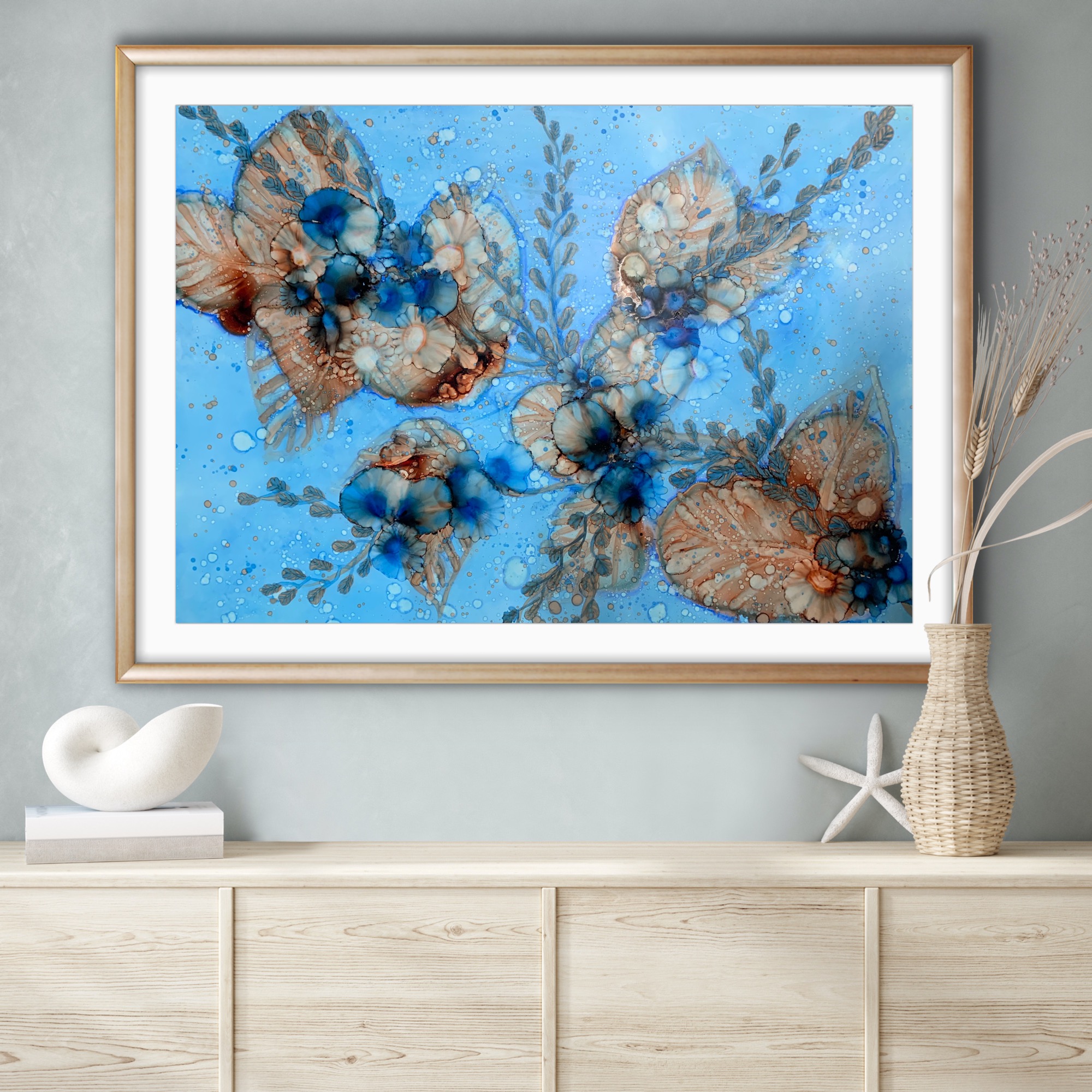 Original 65 cm x 91 cm Alcohol ink yupo paper sealed with high grade varnish and UV spray.