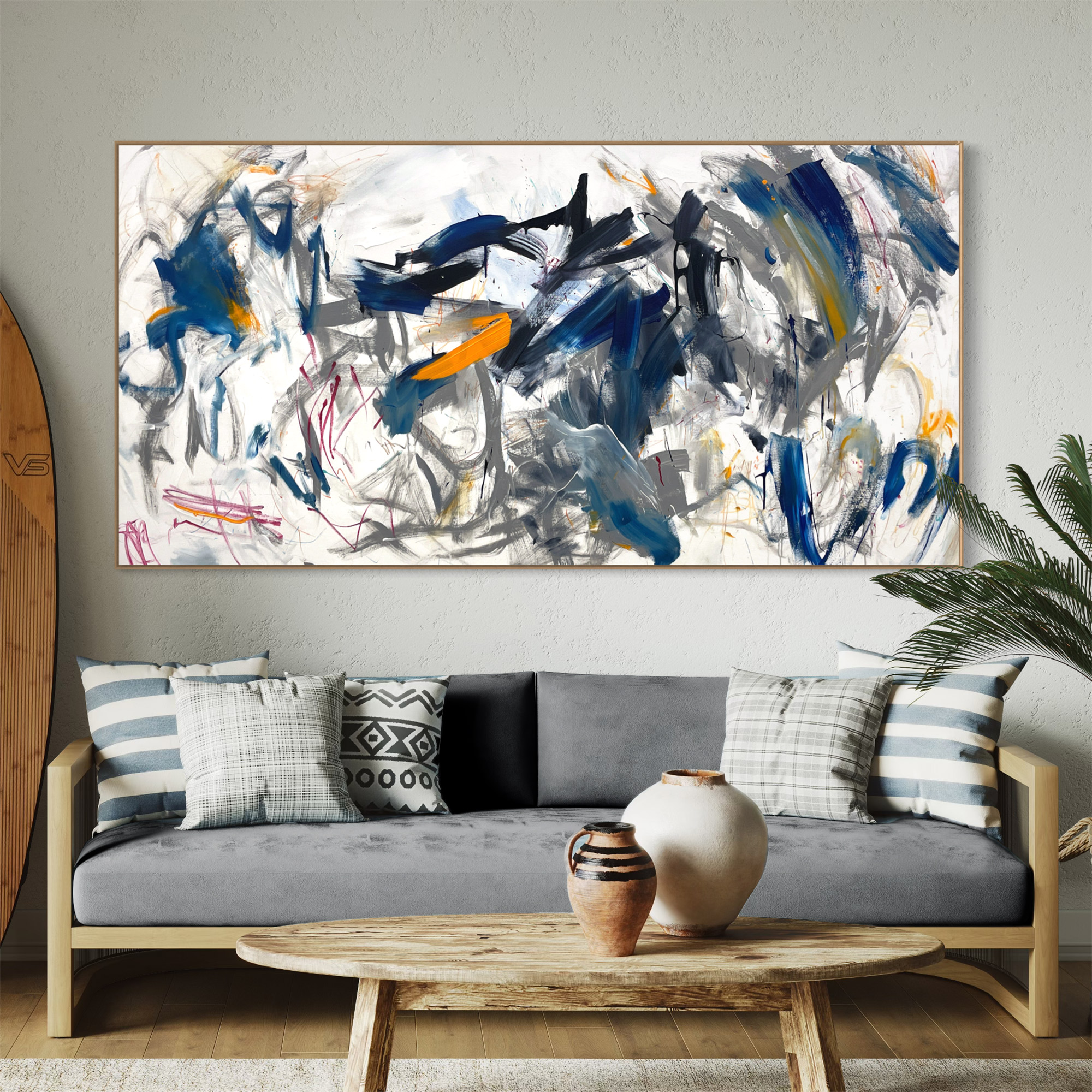It is acrylic on stretched canvas and comes framed in natural timber.