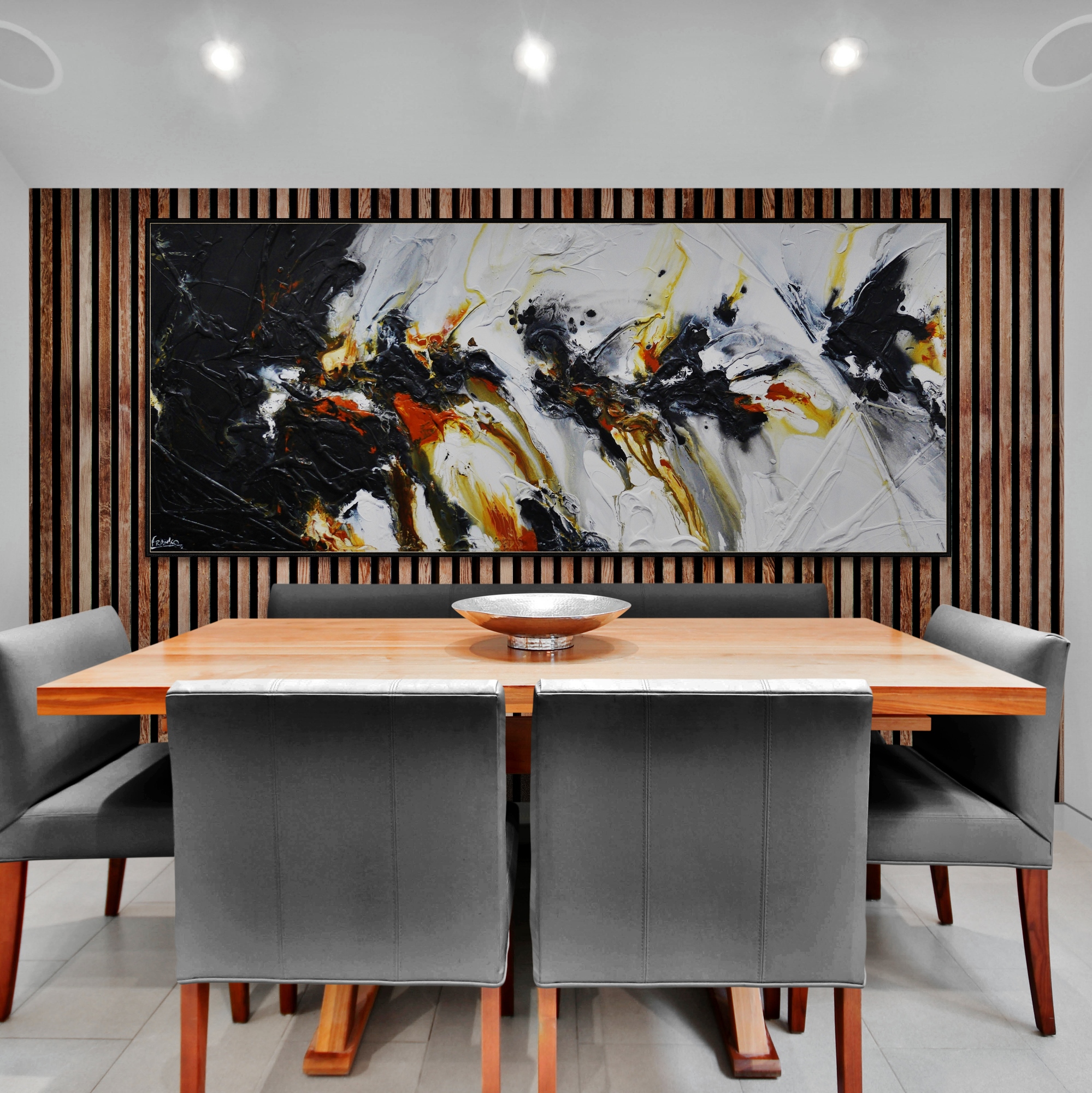 Provided with listings are some insitu images. We strive to ensure they are accurate in scale. Sometimes we will add an external frame to the painting insitu, to provide a vibe for how that would look also. As mentioned above, my pieces arrive ready to install with gallery finished edges and honestly, most people don’t add external framing. However, it is of course an option. If you have any questions, please let me know. We are here to help and want to make it as easy as possible for you if your décor aspirations require it.