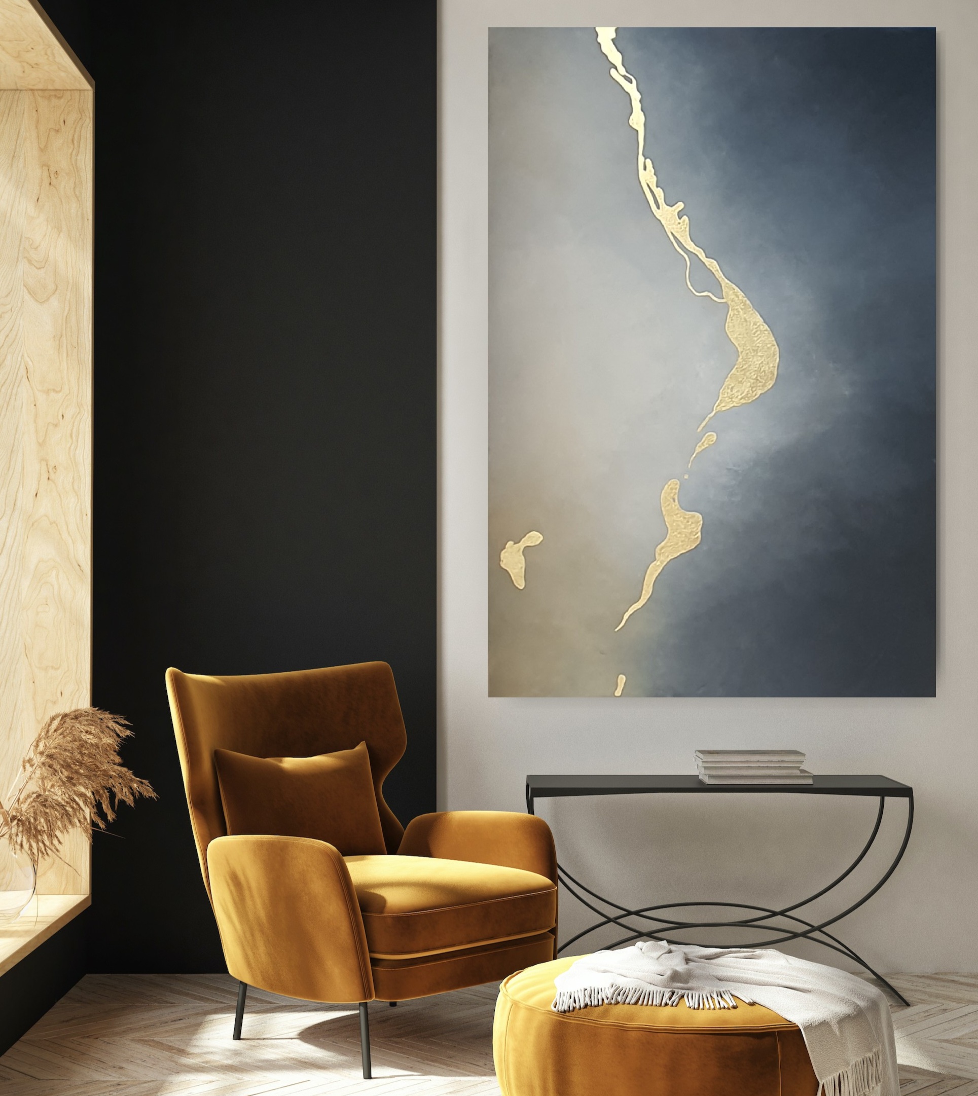 I view painting as sheer passion and feeling. Through my process I don’t seek to depict a set idea or subject, but instead I let scenes and dynamic movement emerge organically.