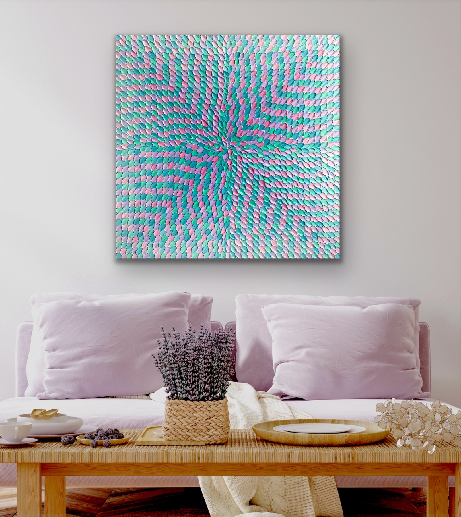 This artwork color palette was inspired by beautiful purple and teal pastel colors.