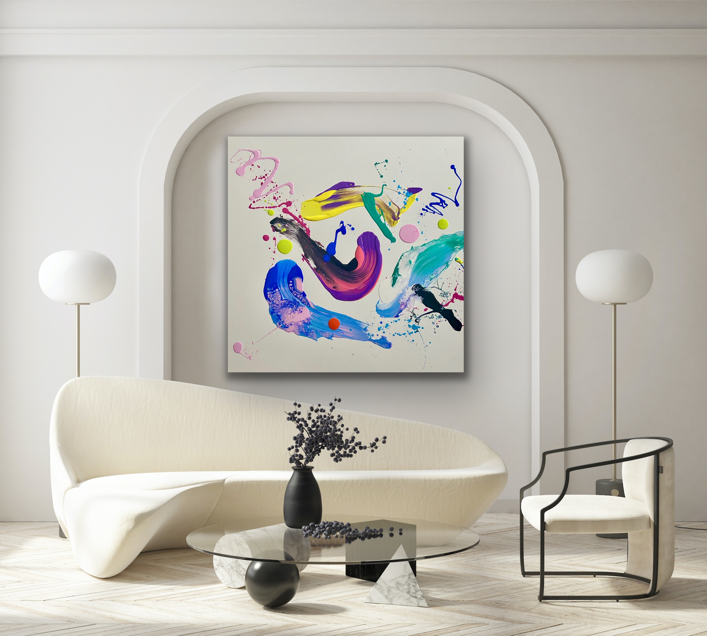 Great focal point and nice statement piece 122 x122cm on fine thick edge gallery strecthed canvas.
