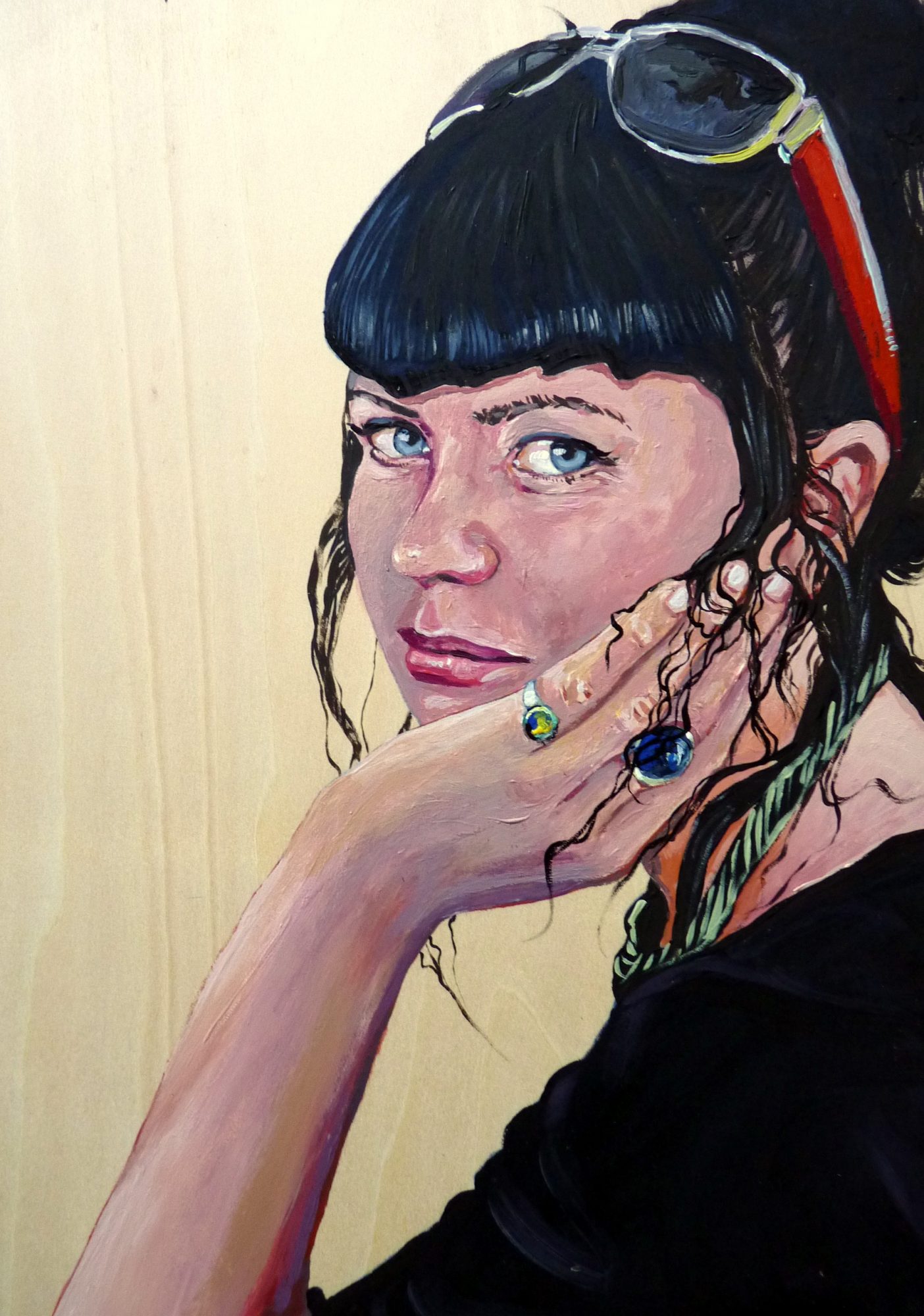 Portrait of a young woman in reflective stillness at the moment that she glances up. I loved the intense gaze and richness of her dark hair.