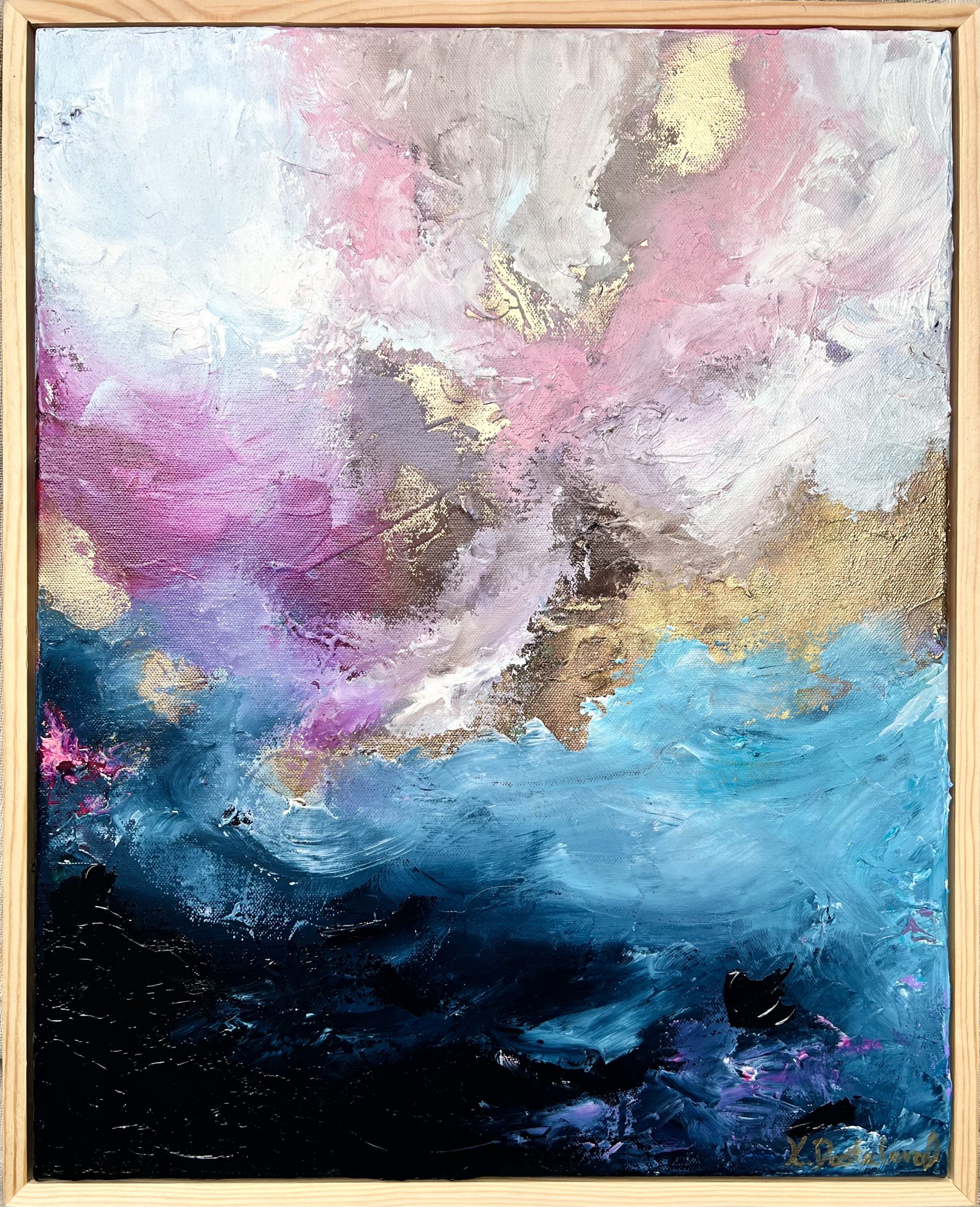 Artist’s signature on the back along with the name of the painting, year of creation and size