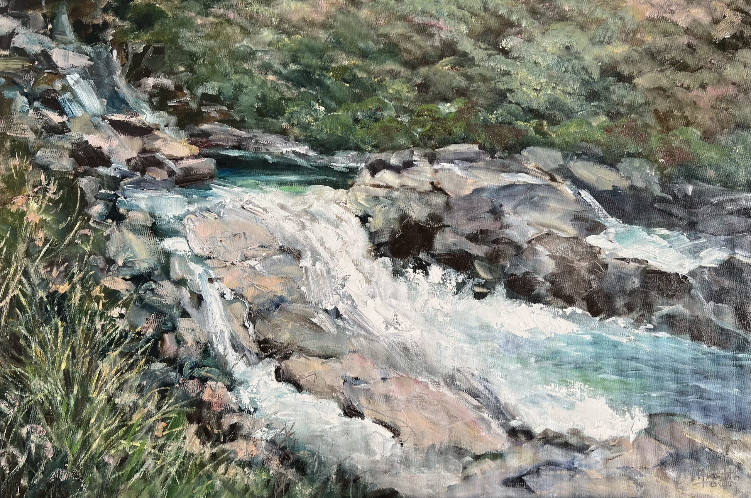 This artwork was inspired by the water falling in to one of the rock pools on a cool autumn day.