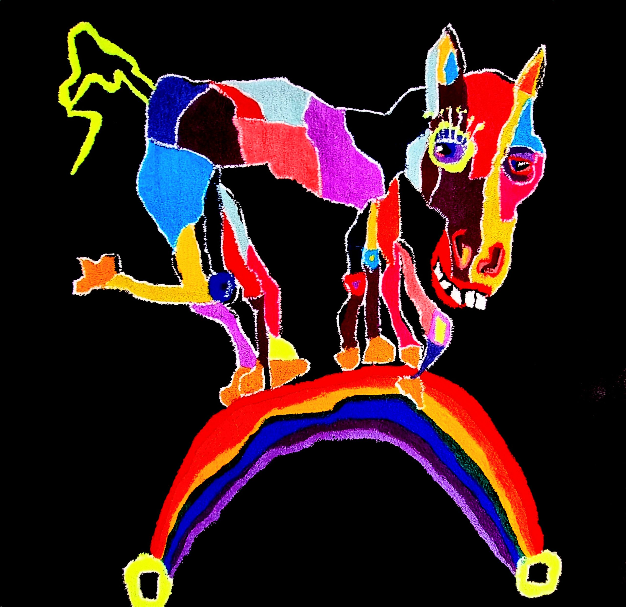 Sleipner and the rainbow bridge rug by Karen Chappelow 148cm x 143L handmade in WA