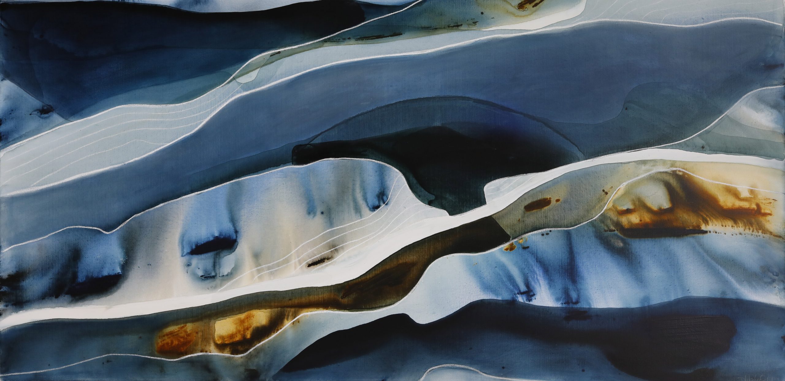 Slipstream 1 by Dinah Wakefield is inspired by the light, the colours and the natural beauty of the Noosa region of Australia. “What I love most about Noosa is the interplay of light. From the oceans to the clouds, to the river estuaries and the hinterland, this canvas unfolds before me every day and finds expression in my paintings”.