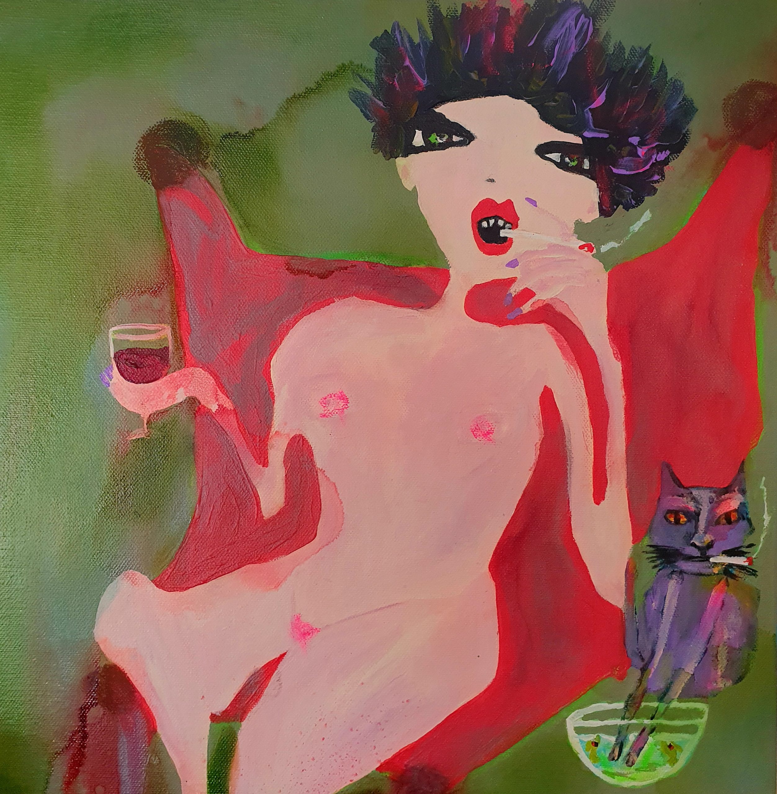 Another lighthearted painting, is she Smoking? or Sssshmooookenn? And who doesn’t love a smoking cat-sorry not sorry!