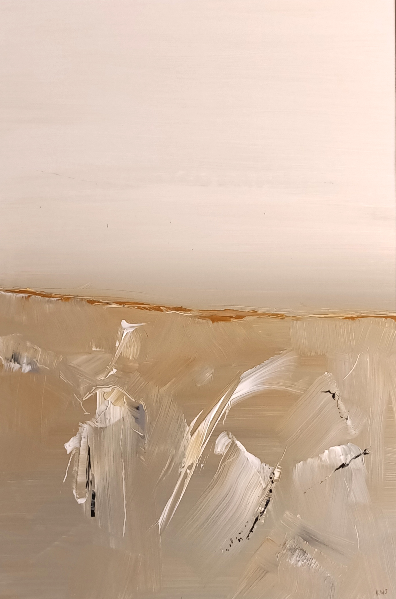 Snow Drift by Keith Southall. Abstract Landscape influenced by the magnificent scenery in and around the Snowy Mountains region of Australia. Acrylic on paper.