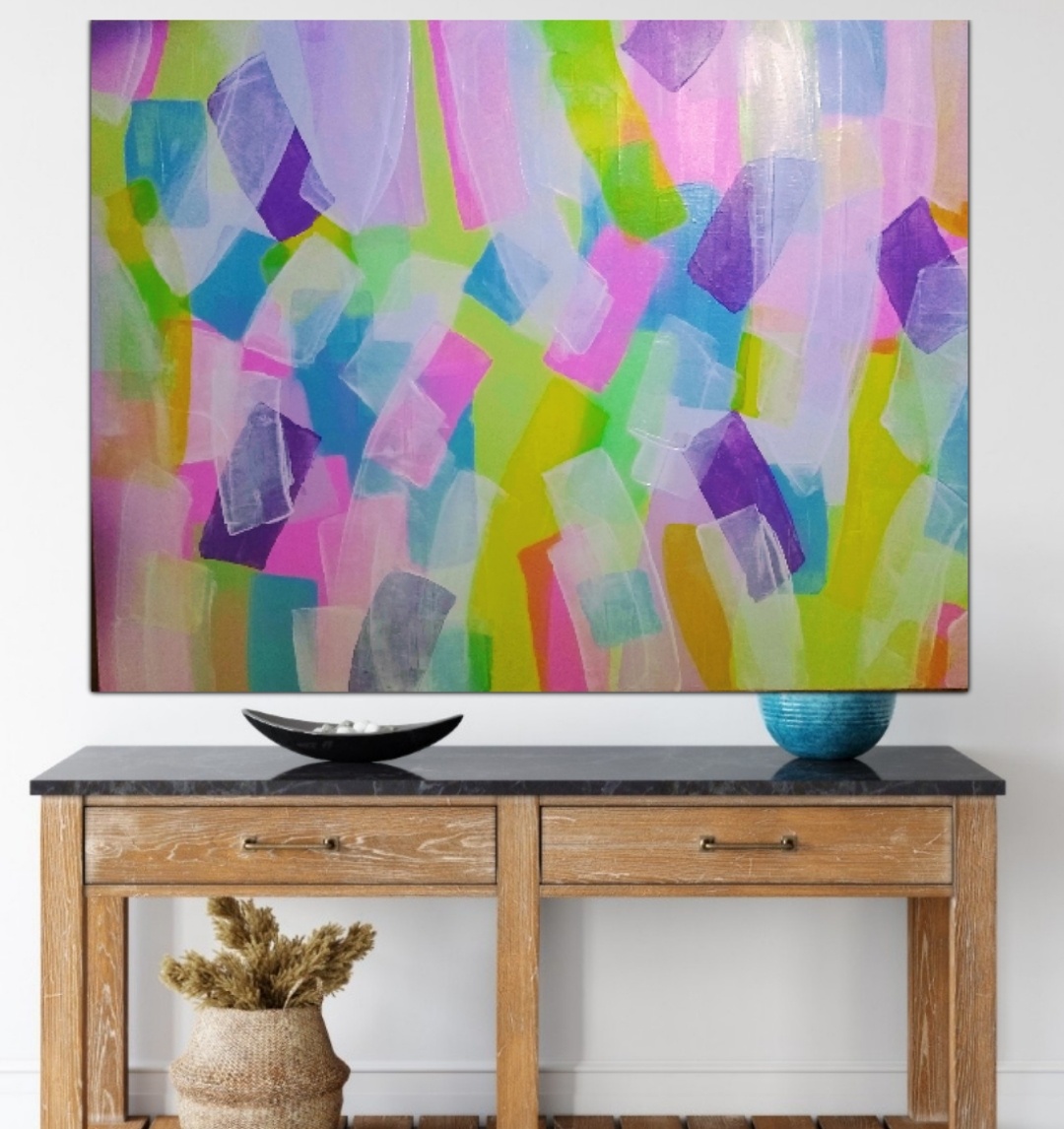 Abstract painting on stretched canvas, inspired by beautiful colours of candies.