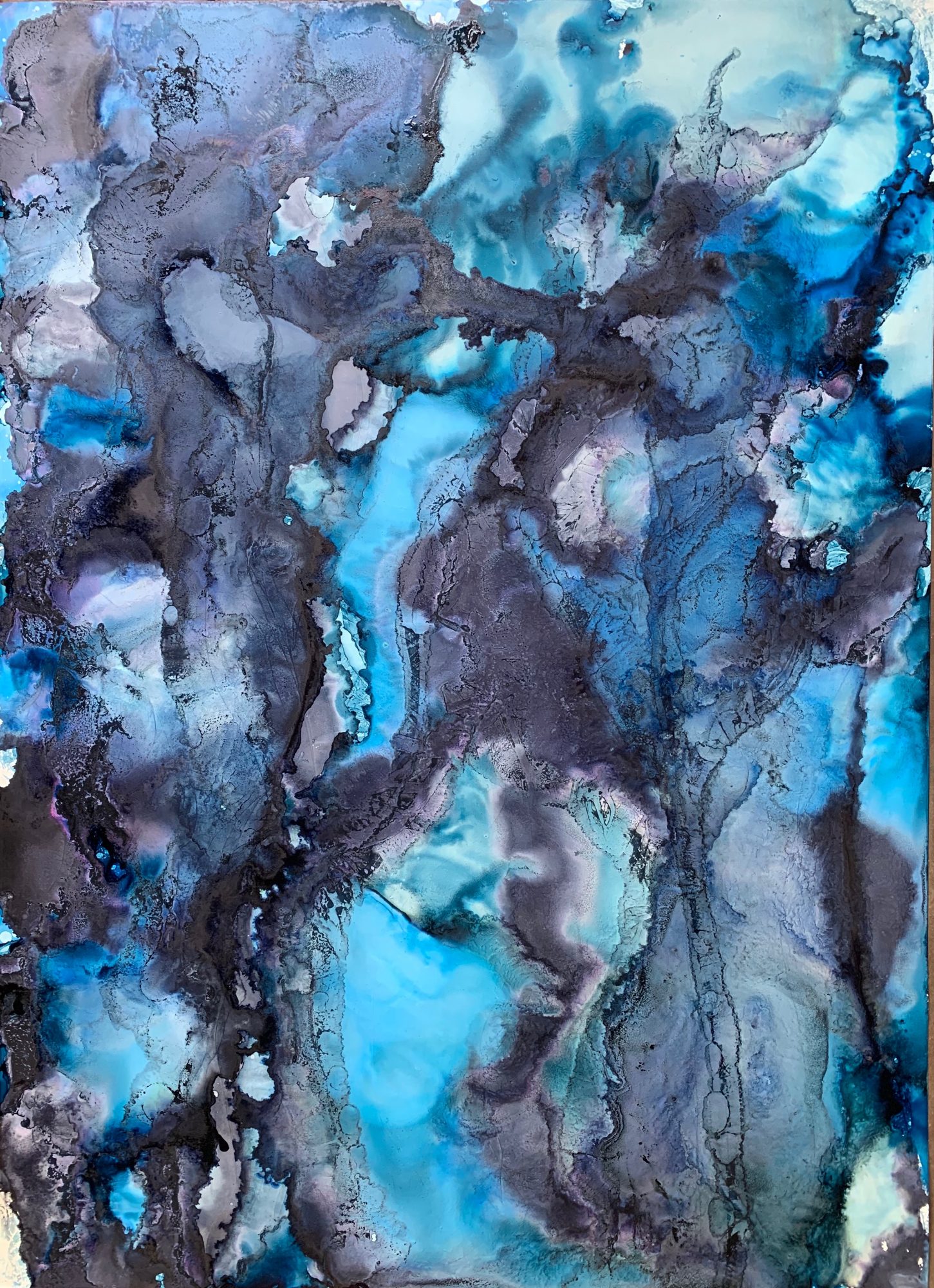 Original framed 109.5 cm height x 79 cm width Alcohol ink on yupo paper sealed with high grade varnish and UV spray.
