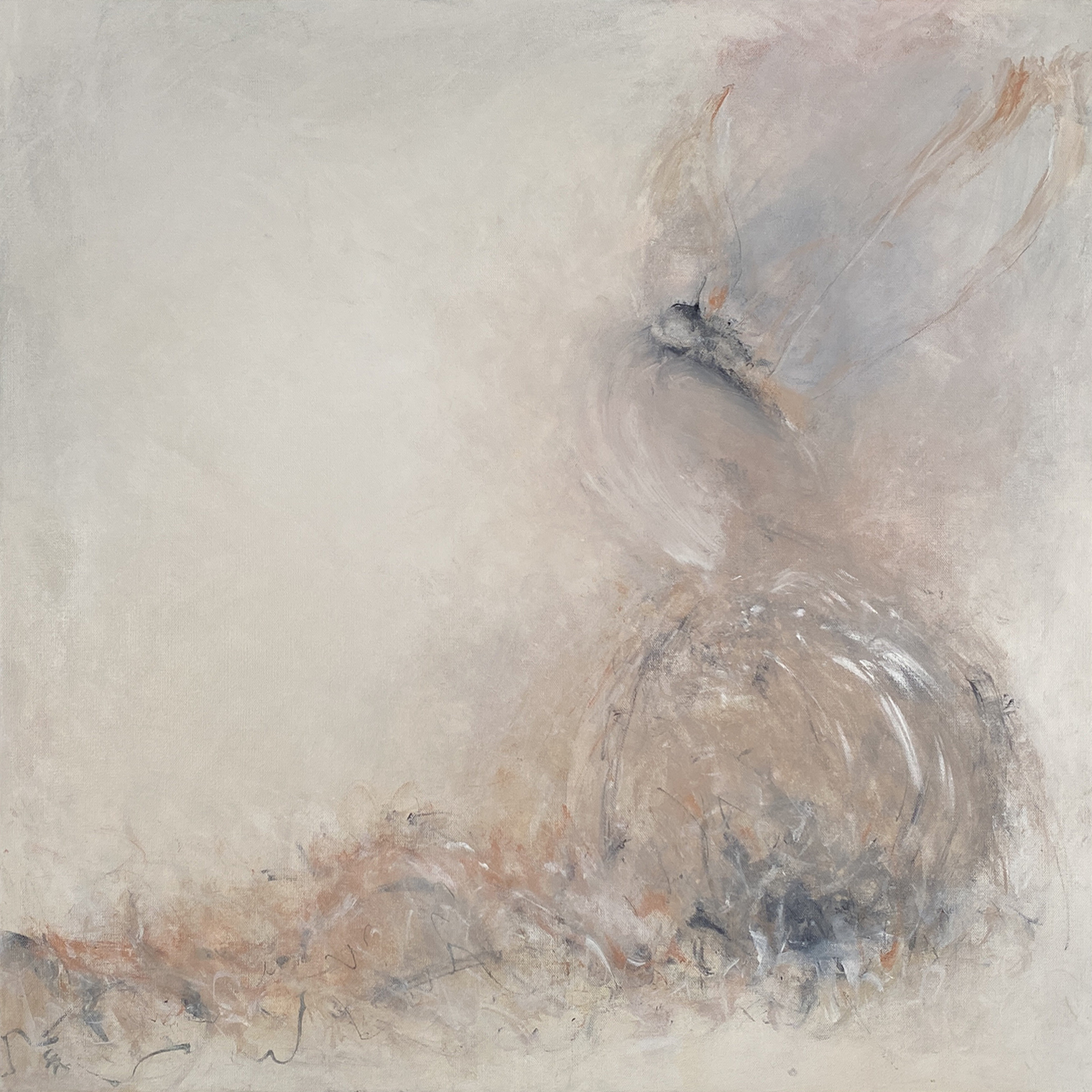 The mark-making speaks of the tension in the landscape and the subtle palette suggests the movement of things coming into and fading out of view, whilst the silence of the gentle scumbling punctuates the spaces in-between. It is a piece from my current series ‘Silence, Tension, Space’.