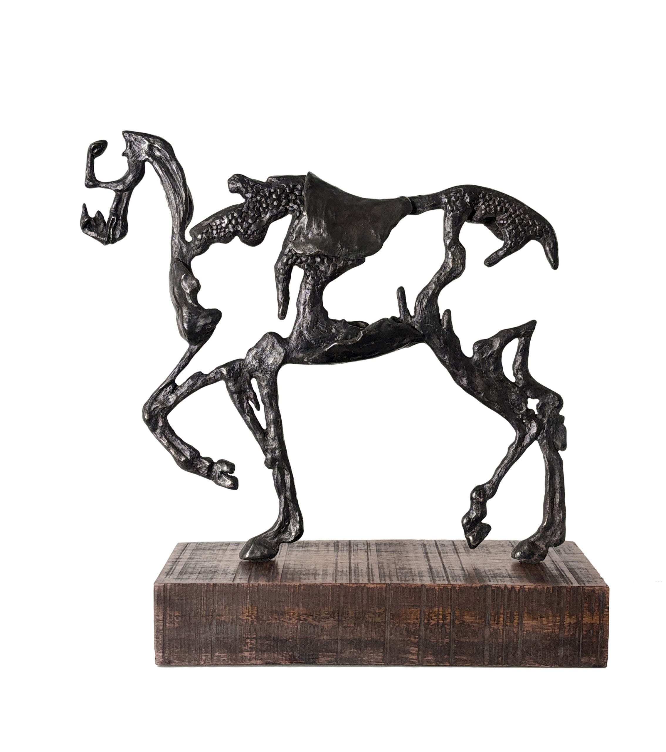 Soldier – by Helena Lillywhite – Â I grew up on a riding school, deeply connected to horses, creatures of power, freedom, and spirit. My Horse Series sculptures are not literal forms but evocations of movement and essence. Fragmented bronze, shifting light, and rough stone bases express their primal energy. Each piece is named after a real horse from my childhood, making the series both tribute and memory, a bridge between past and present, body and spirit.
