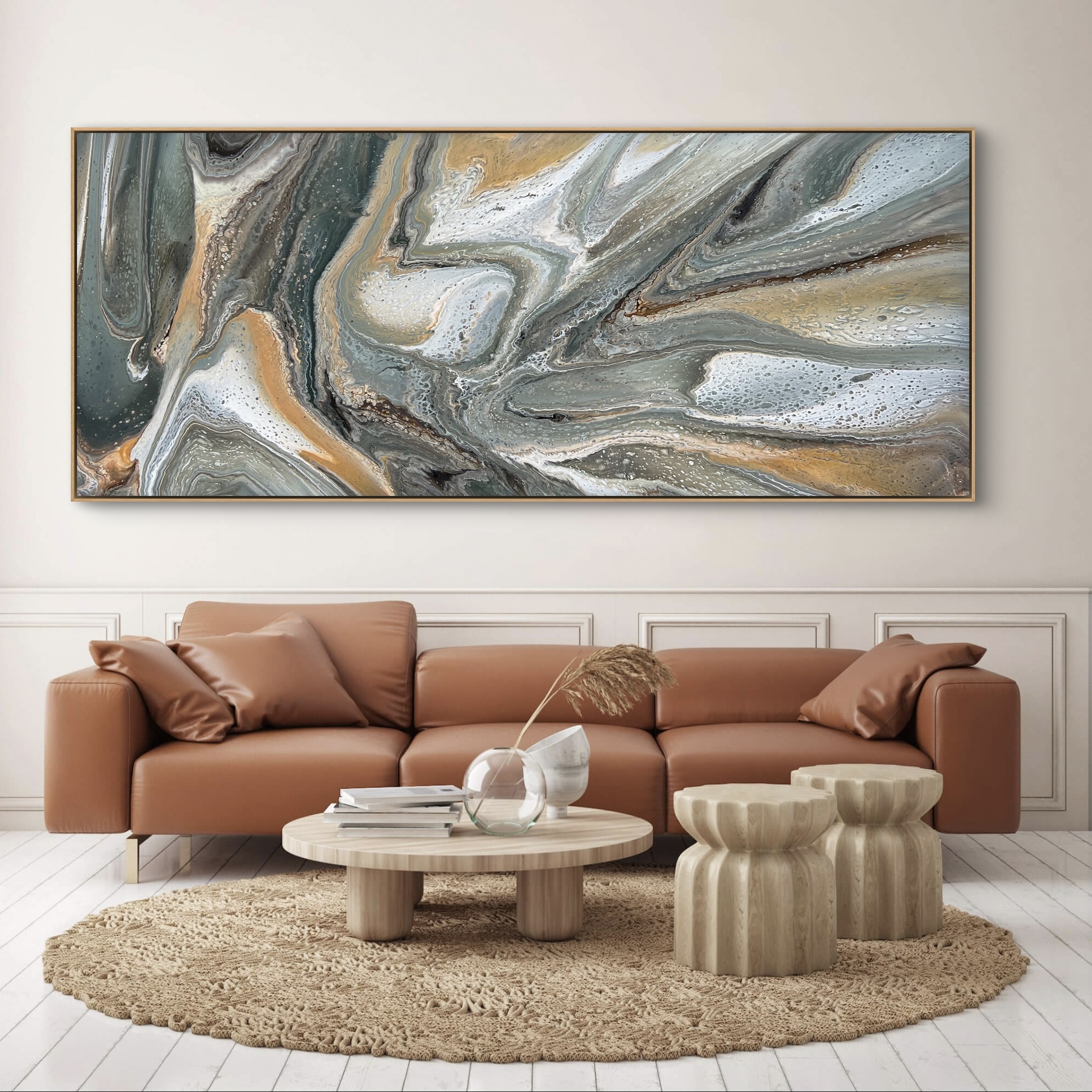 These paintings are created on a 40mm frame wrapped in the highest quality canvas. I use thinners, Surfactants and Synthetic Polymers to create pieces inspired by aerials, marble, granite and seascapes. The sheer number of variables in each painting makes every piece one of a kind and can never be replicated. Having said that, If this piece caught your eye but isn’t quite the right size or colour/s please reach out via help@artloversaustralia.com.au and we can discuss the possibility of doing a commission in this vein,