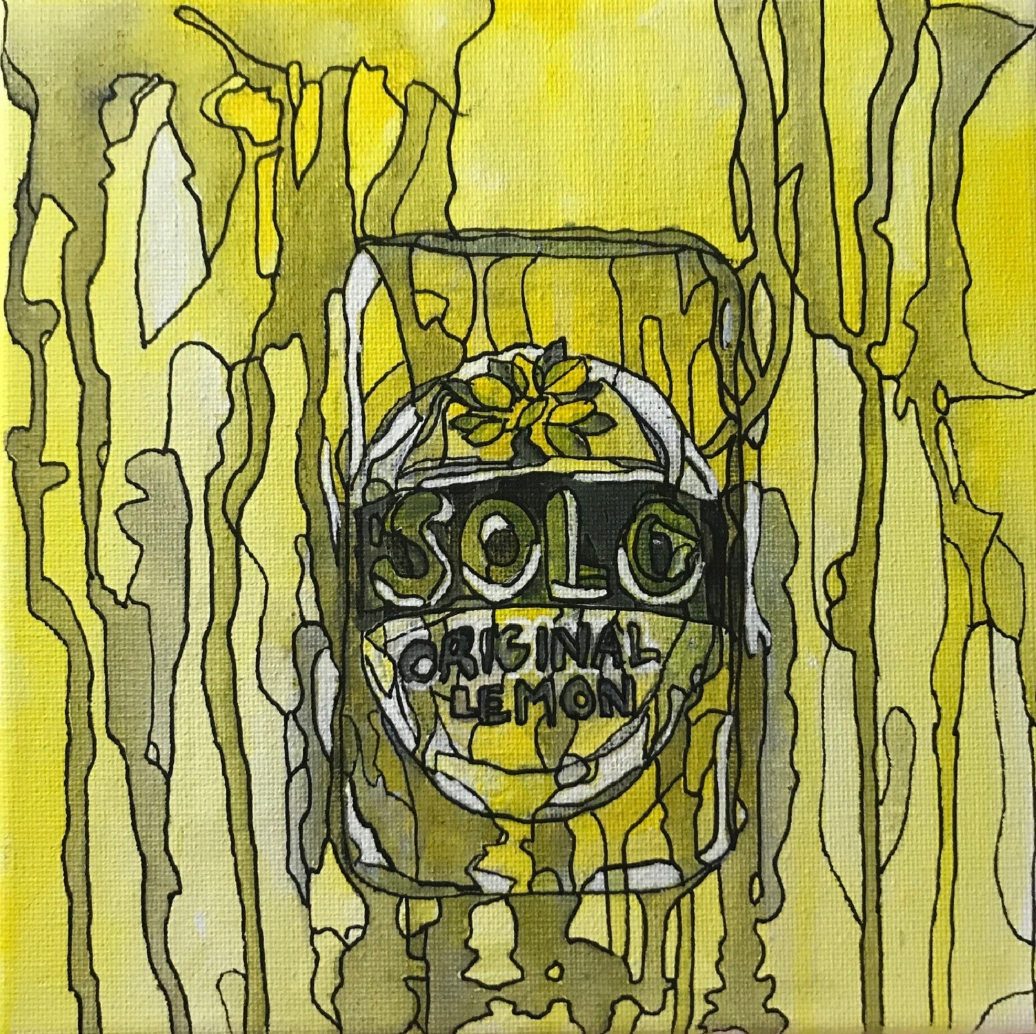 An original abstract painting of a solo can. Image created with Acrylic paint. Diluted acrylic dripped over the top. Black definition lines added once paint has dried, outlining the various shapes the paint drips create. Lines creating the detail and the interesting effect. Had a lot of fun painting the can and using the lines to make it standout and also to look different. Hope you enjoy too.