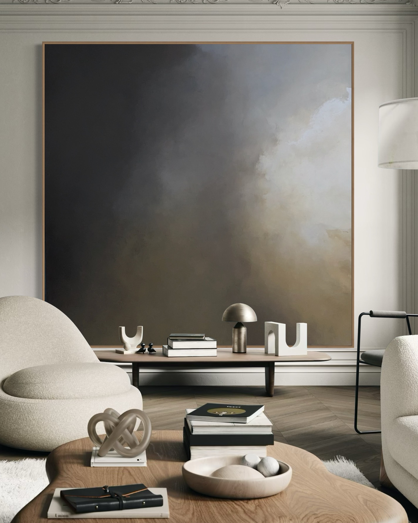 I view painting as sheer passion and feeling. Through my process I don’t seek to depict a set idea or subject, but instead I let scenes and dynamic movement emerge organically.