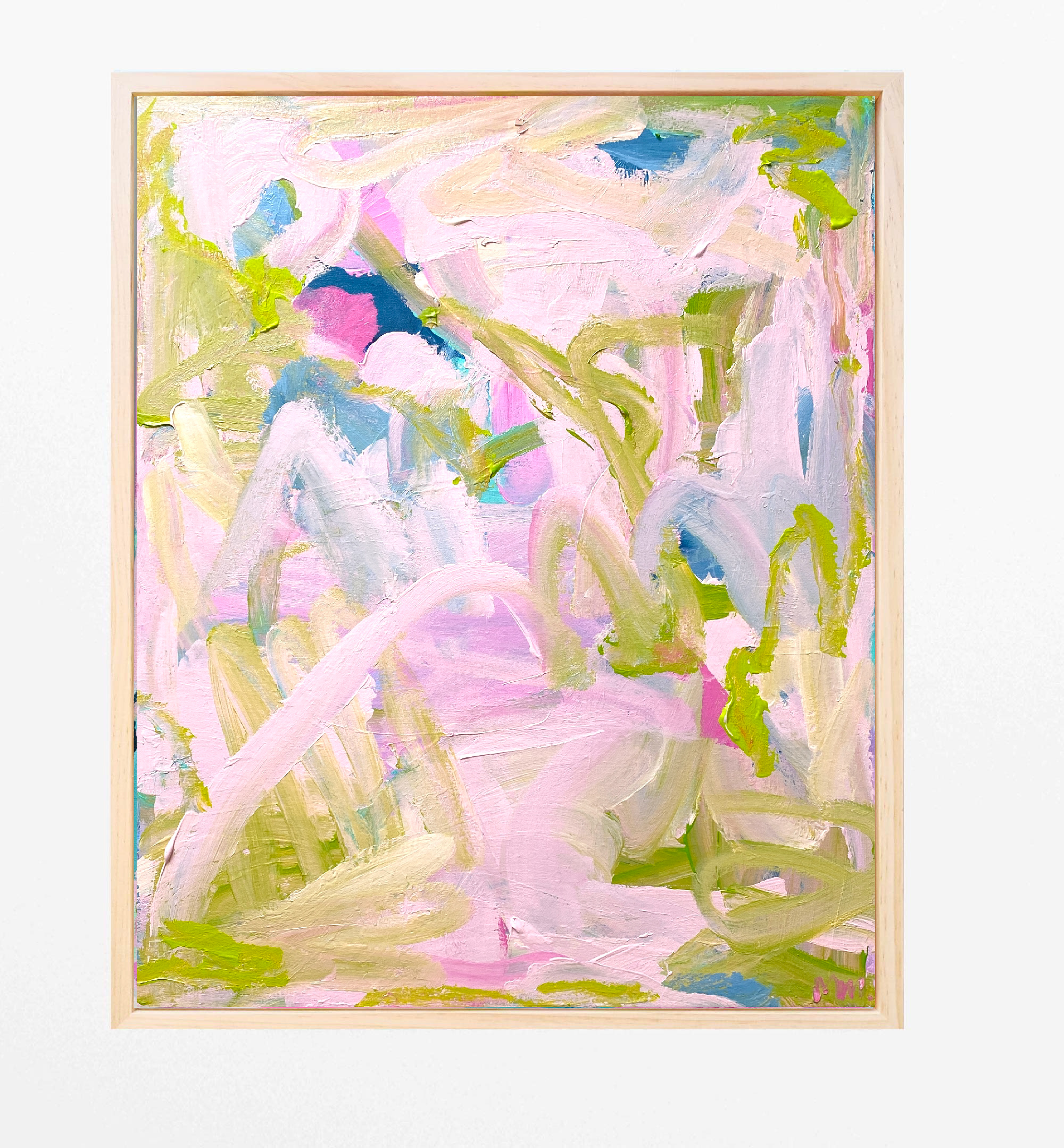 Acrylic on hand stretched canvas framed in a pine timber floating frame.