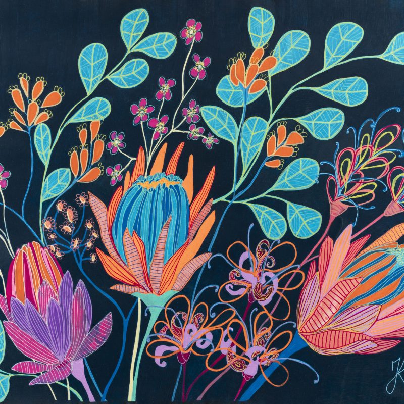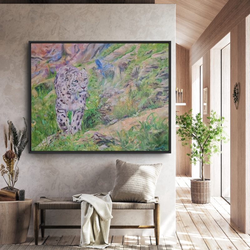 It is acrylic on stretched canvas and comes framed in natural timber.