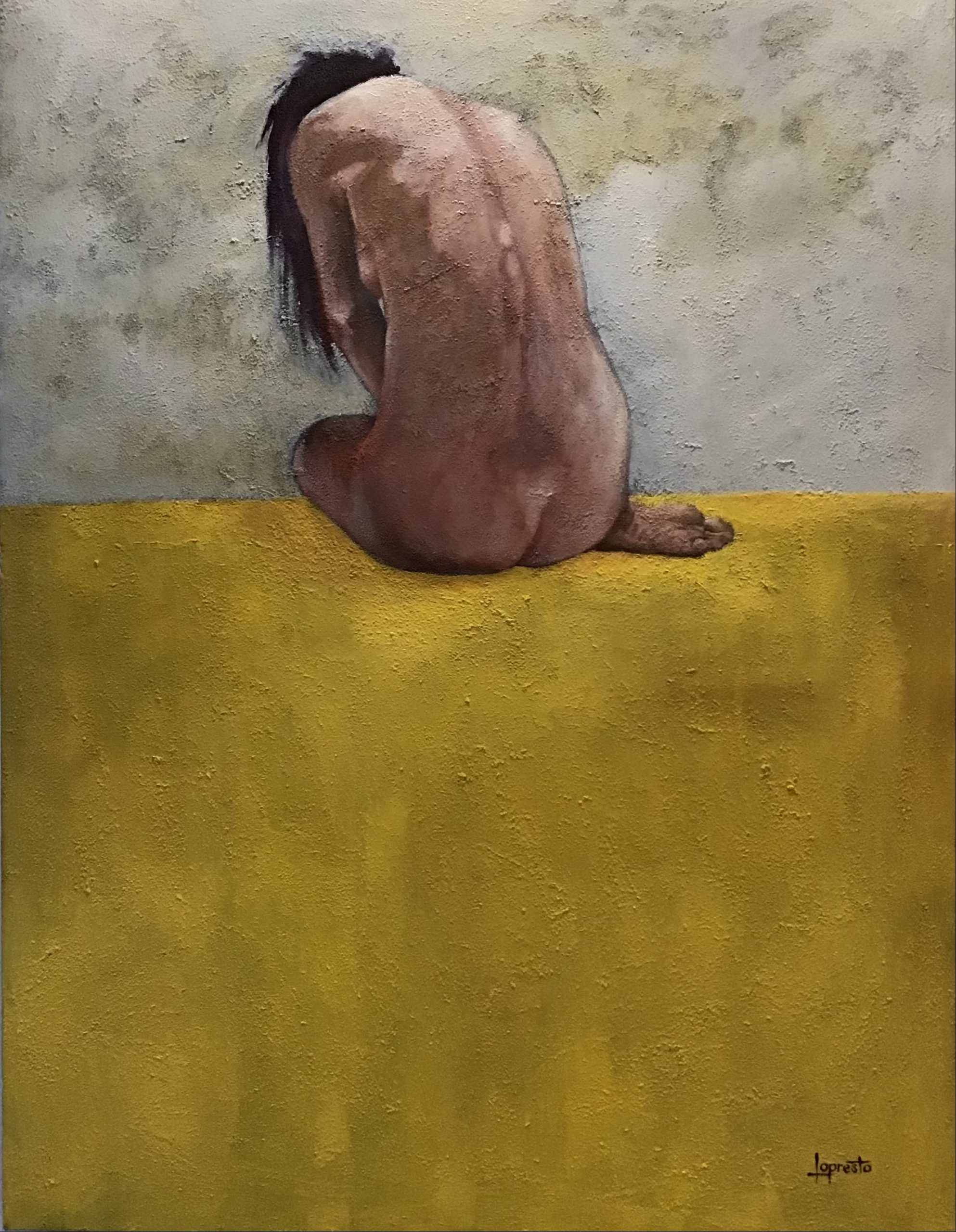 Sorrow by Doriano Lopresto – This is a large painting with a very emotive theme. How do we feel in times of loss or sorrow? We might feel naked, exposed and alone, swallowed up by the emptiness we feel inside. There is also a sense of vulnerability that surrounds us.
