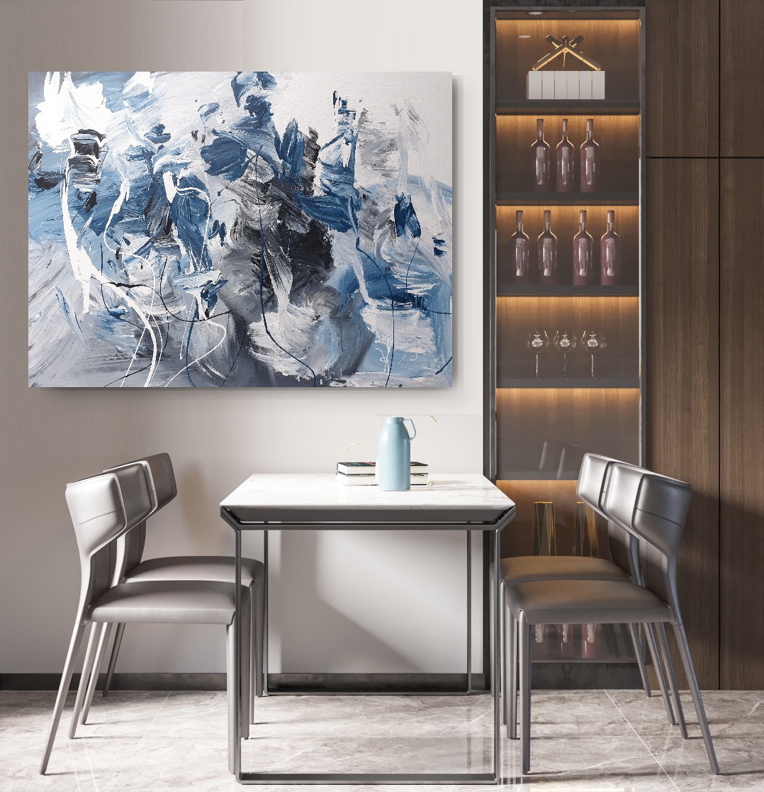 I view painting as sheer passion and feeling. Through my process I don’t seek to depict a set idea or subject, but instead I let scenes and dynamic movement emerge organically.