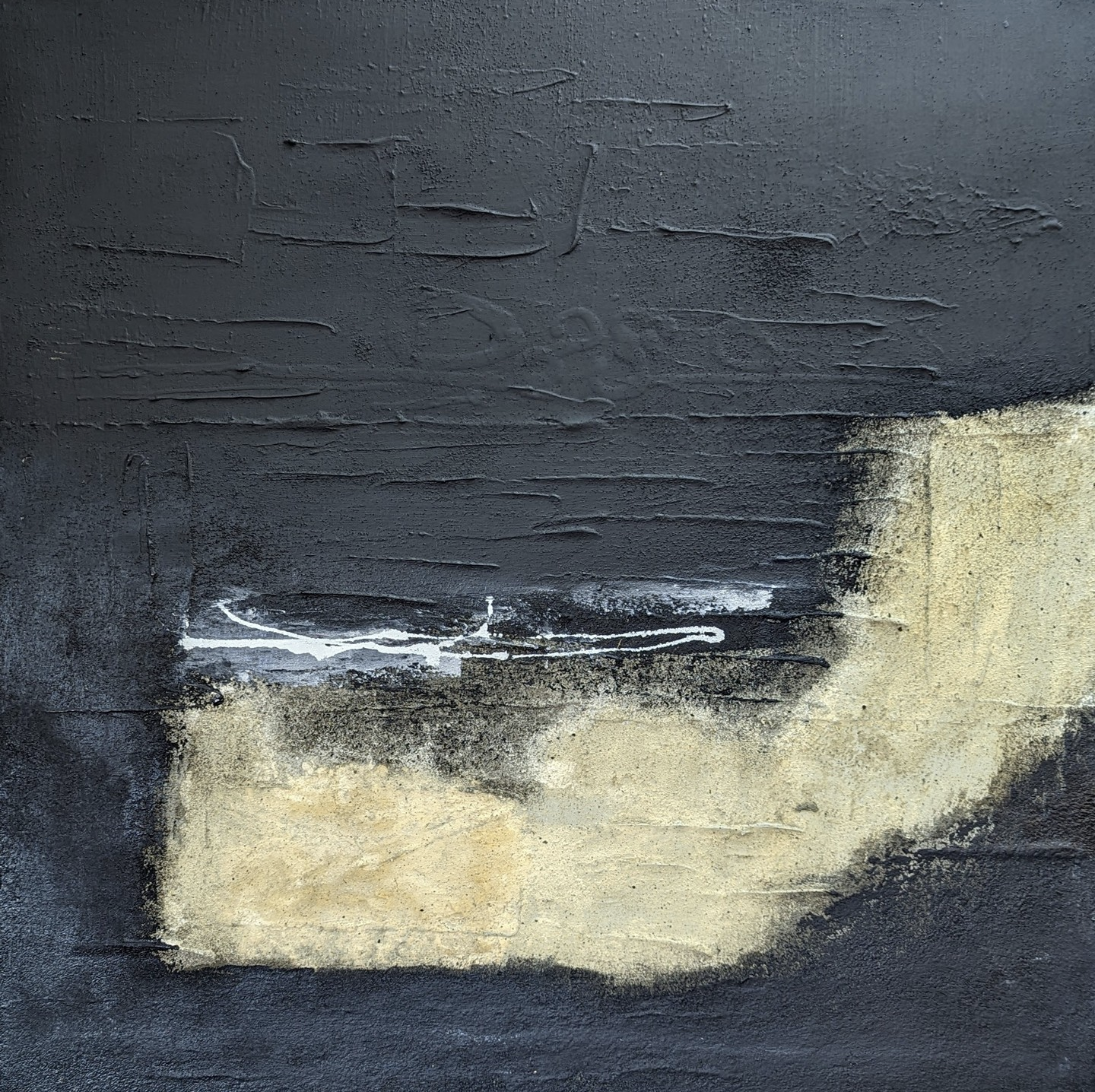 This painting portrays a subtle yet powerful representation of the human soul. The canvas is a blend of fluid brush strokes, which gives the painting the sense of depth and movement. The use of black and sand colours also represents the contrast between light and darkness, good and evil, which are concepts often associated with the human soul, while the sand colour represents the purity of its innocence.