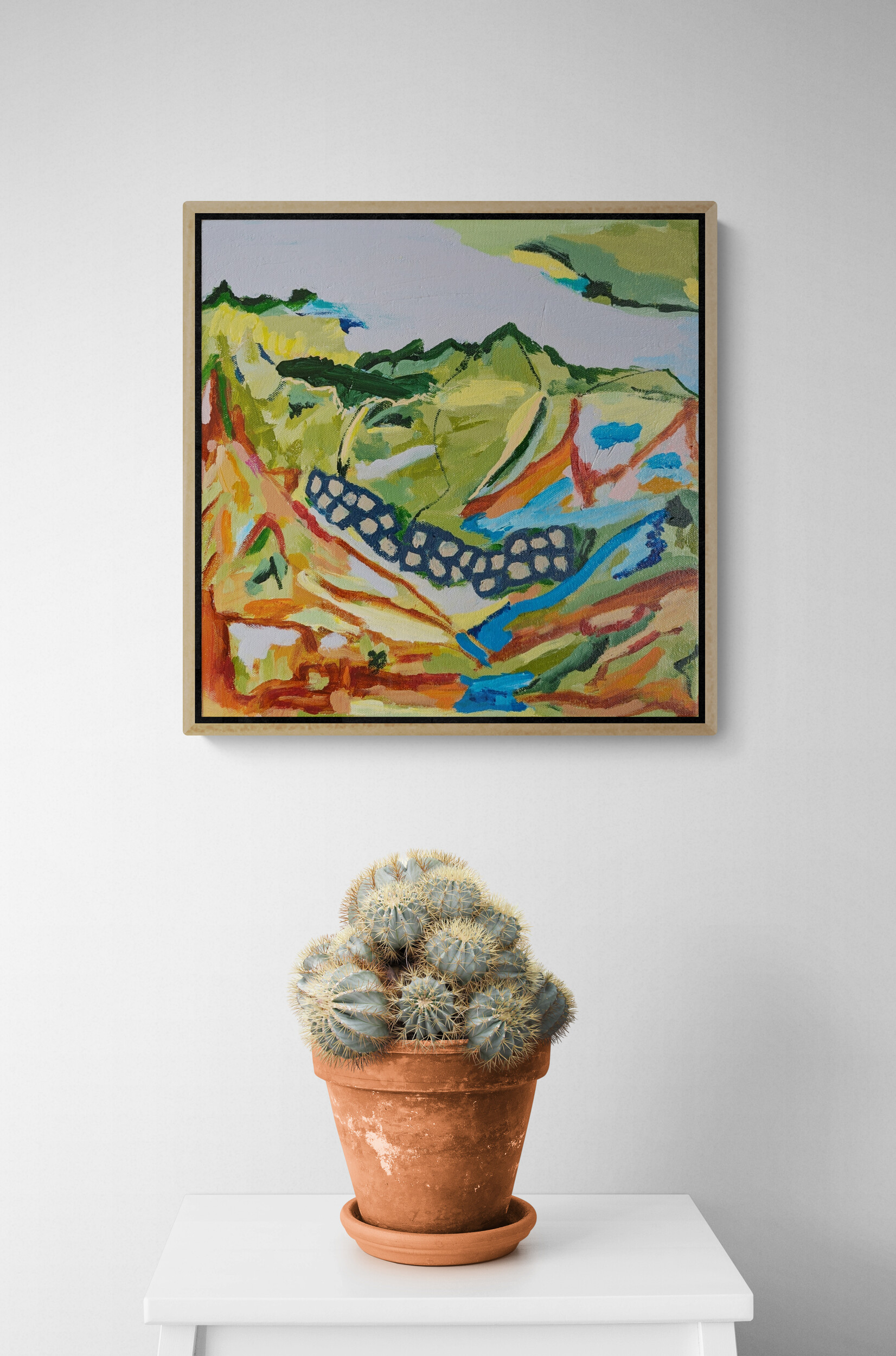 Through bold, gestural strokes and an expressive palette, this work captures the essence of erosion, renewal, and the deep connection between land and sky. The composition invites viewers to contemplate the silent stories held within the stones, whispering of time’s passage and the enduring spirit of Australia’s vast landscapes.
