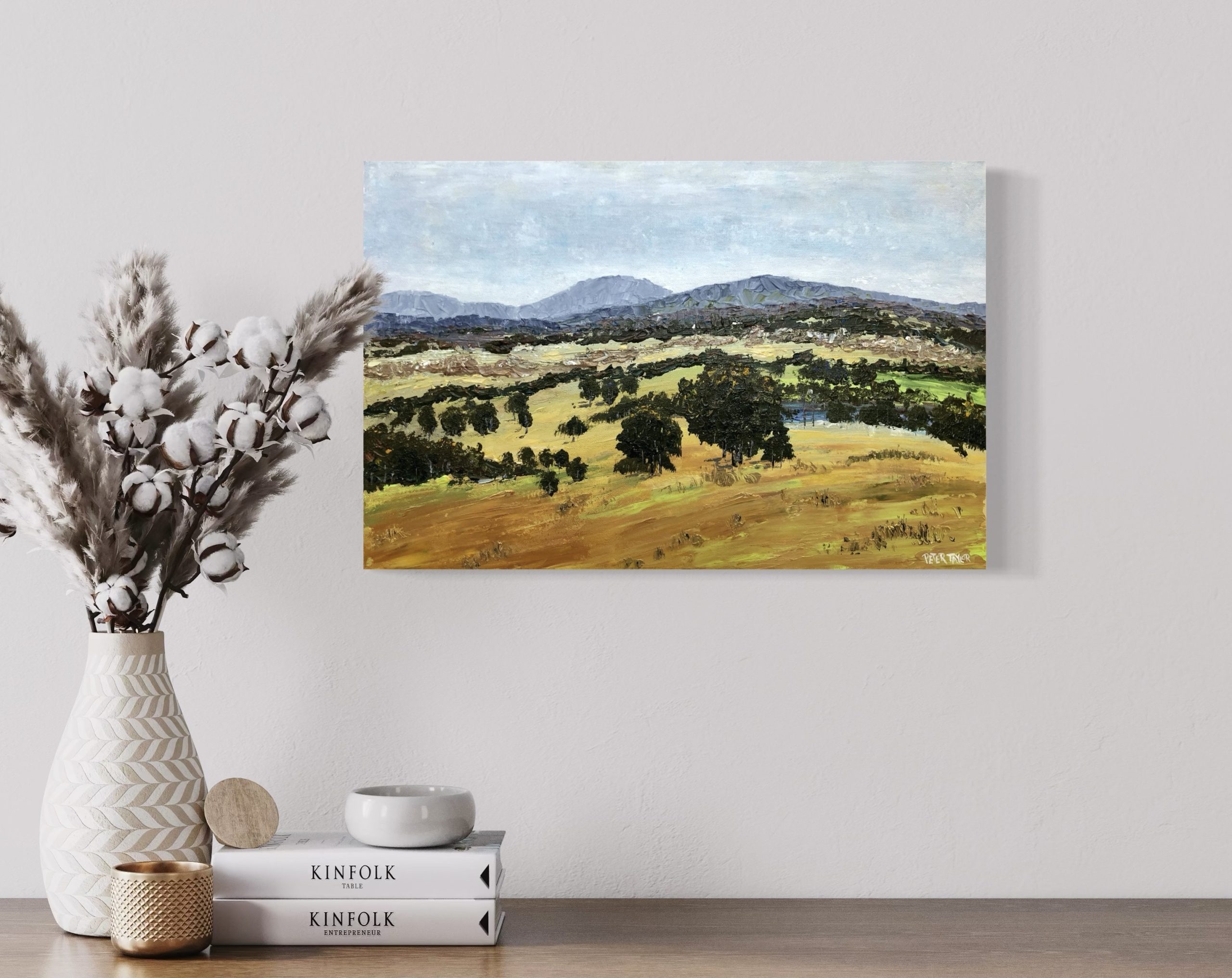 ‘Southern Highlands NSW’Â by Peter Taylor – The beautiful landscape of the NSW Southern Highlands depicted by an artist pallette knife creating thick textures.