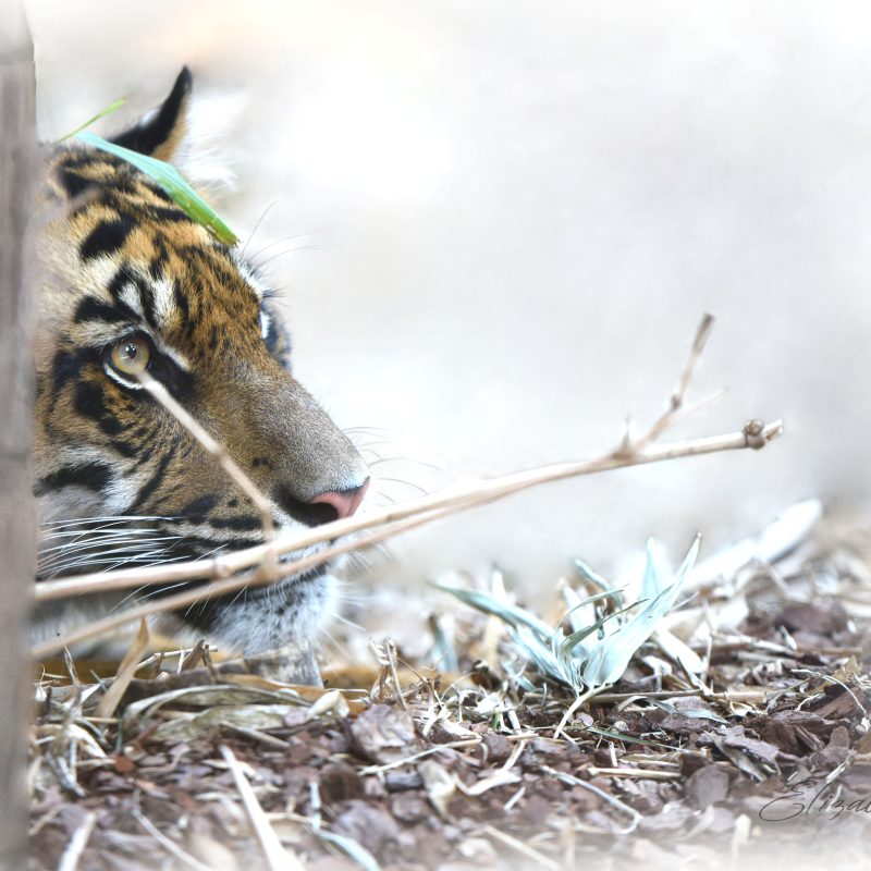 Framed in a light coloured raw wood floating frame.