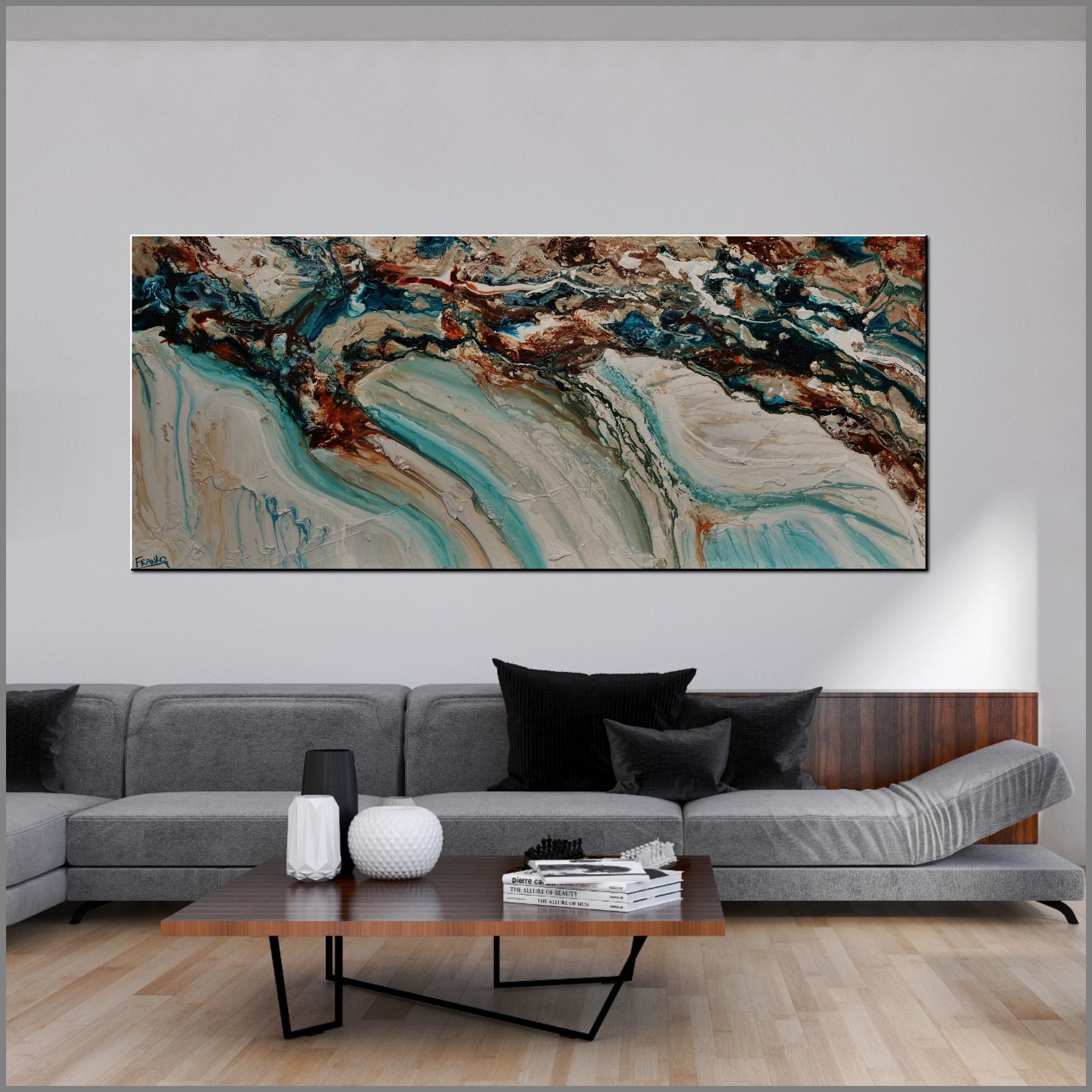 These gorgeous pieces are created on a 40mm frame wrapped in linen, with a triple gloss coat and gallery finished edges. I take my depth of canvas to a different level believing a canvas has 5 sides and should be painted and finished as such. Did I mention I love commissions? So, if you would like a similar piece to this one, different sizes, colours formats etc, just hit me up! I’d love to hear what you have in mind.