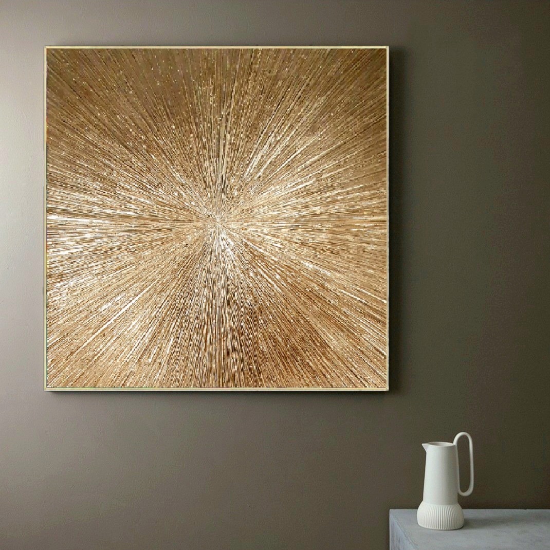 This piece is made by layering modeling paste on the wooden canvas board in a straight line patten and spray painted with high quality metallic 24k gold spray paint.