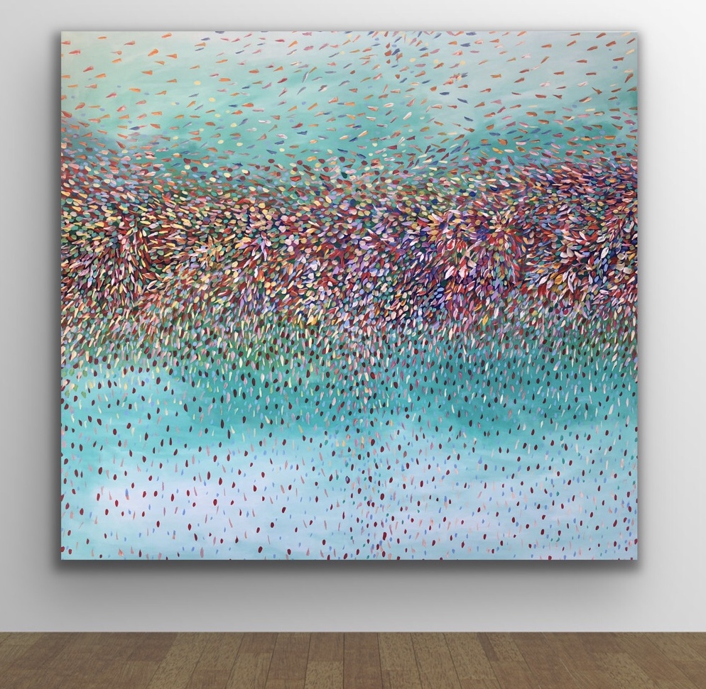 My Sparkling Diamonds painting, a beautiful bouquet of petals fill the sky like fireworks of colours falling onto the landscape . I tried to capture the beautiful rhythms of the petals movements swept by the winds creating a beautiful dance in the sky .Hope with this s work it makes the viewer feel very peaceful and tranquil. This painting is signed and dated 2020 at the back of the painting and comes with a certificate of authenticity.