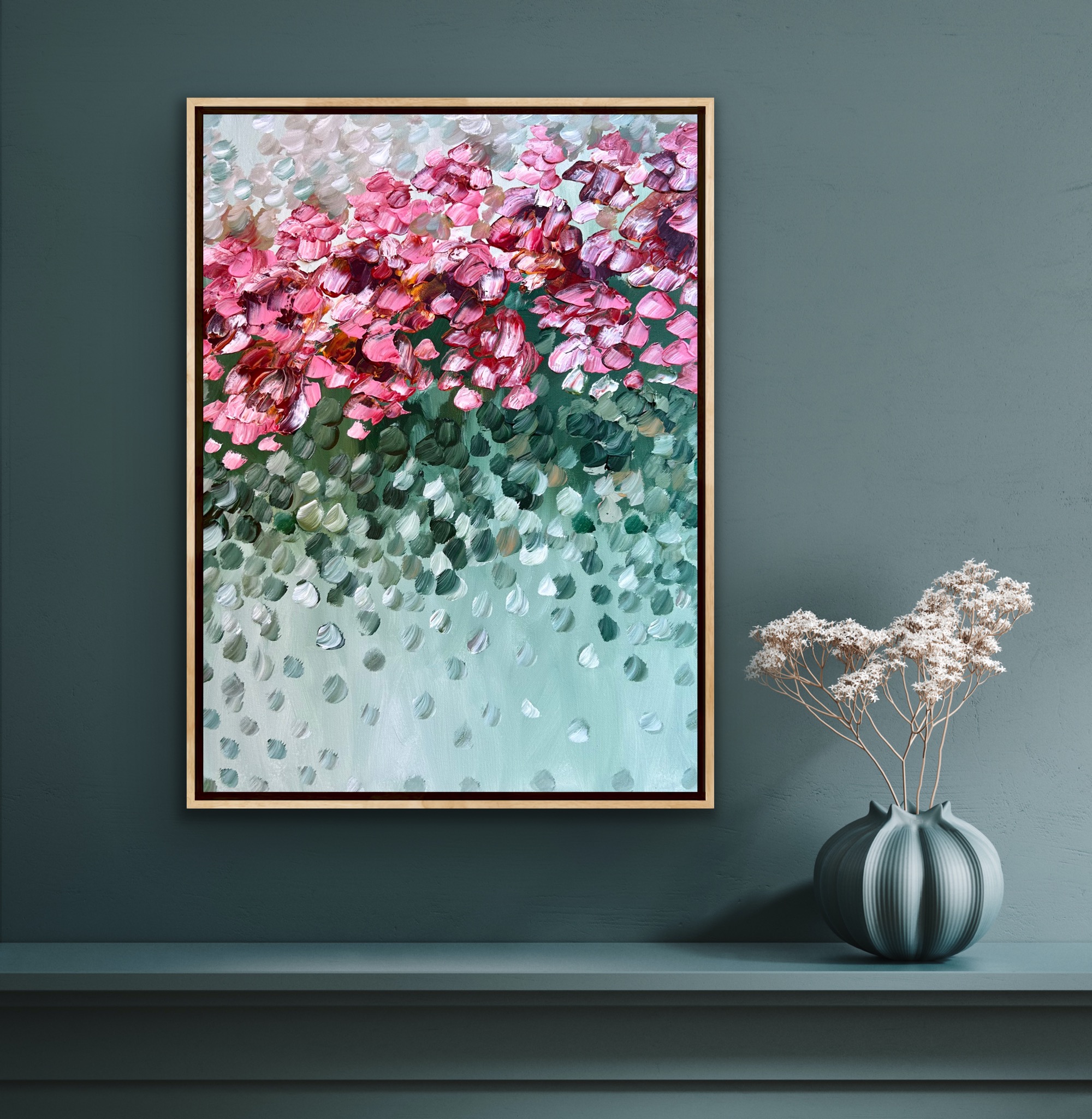 Special Day by Melbourne artist Theo Papathomas is a painting with beautiful colours of the Field covering the whole landscape painted with lots of expression and freedom to create movement. Capturing the light of the sun falling on to the petals and foliage creating a beautiful bouquet of petals . A composition of colours and rhythms of petals dancing over the landscape swept by the winds . A very peaceful and tranquil painting with so much depth . The painting does not come with an external frame.The painting is signed and dated 2023 at the back and comes with a certificate of Authenticity.