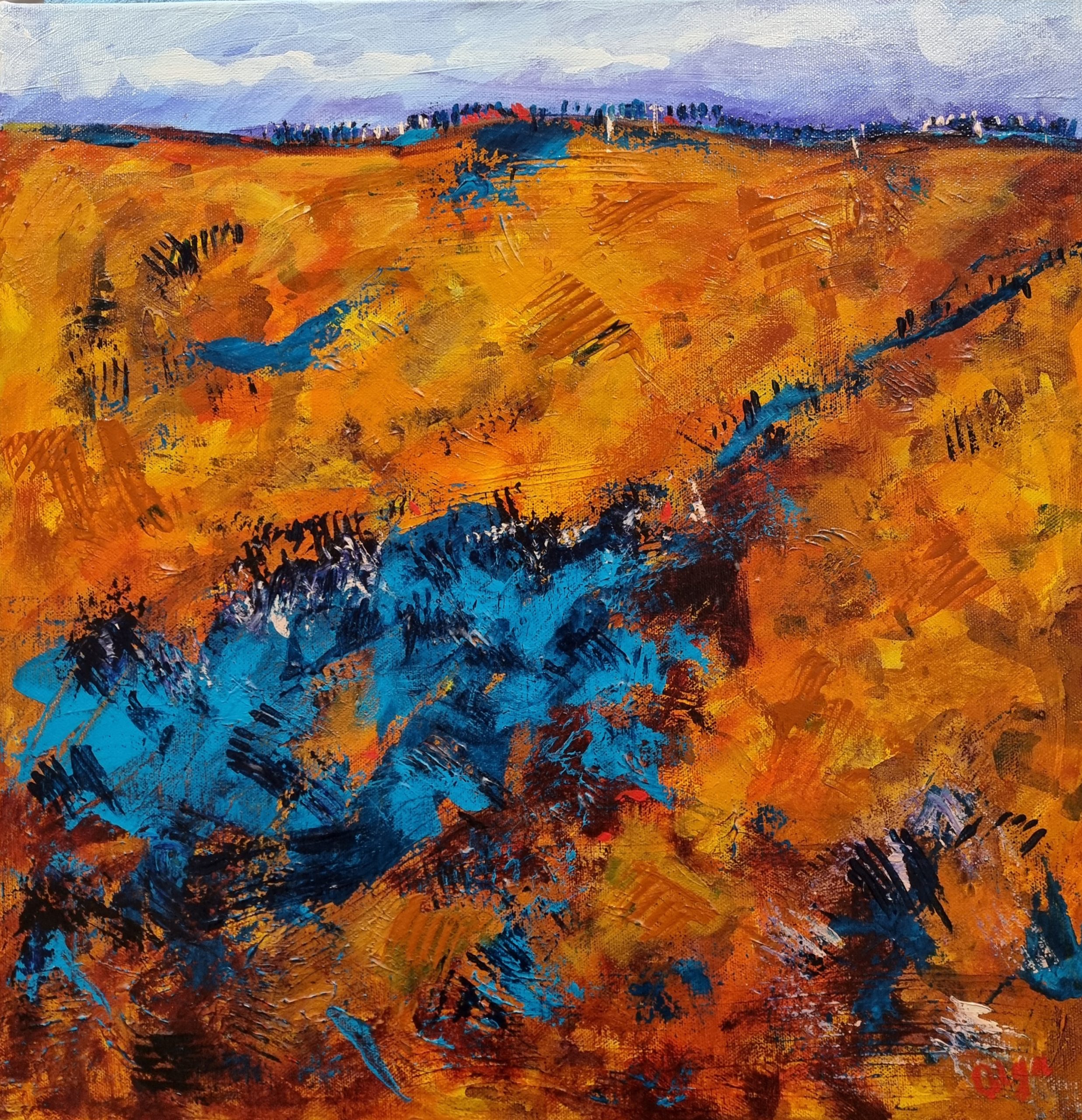This beautiful country captivates me. This is nothing shy or retiring about it. It is life, colour and movement. This piece pays homage to all of those wonderful Australian Artists who drank in the songs of this land and depicted her in all of her glory. ‘Spirit’ is composed of texture and multiple layers of transparent paint. It glows with hidden secrets.