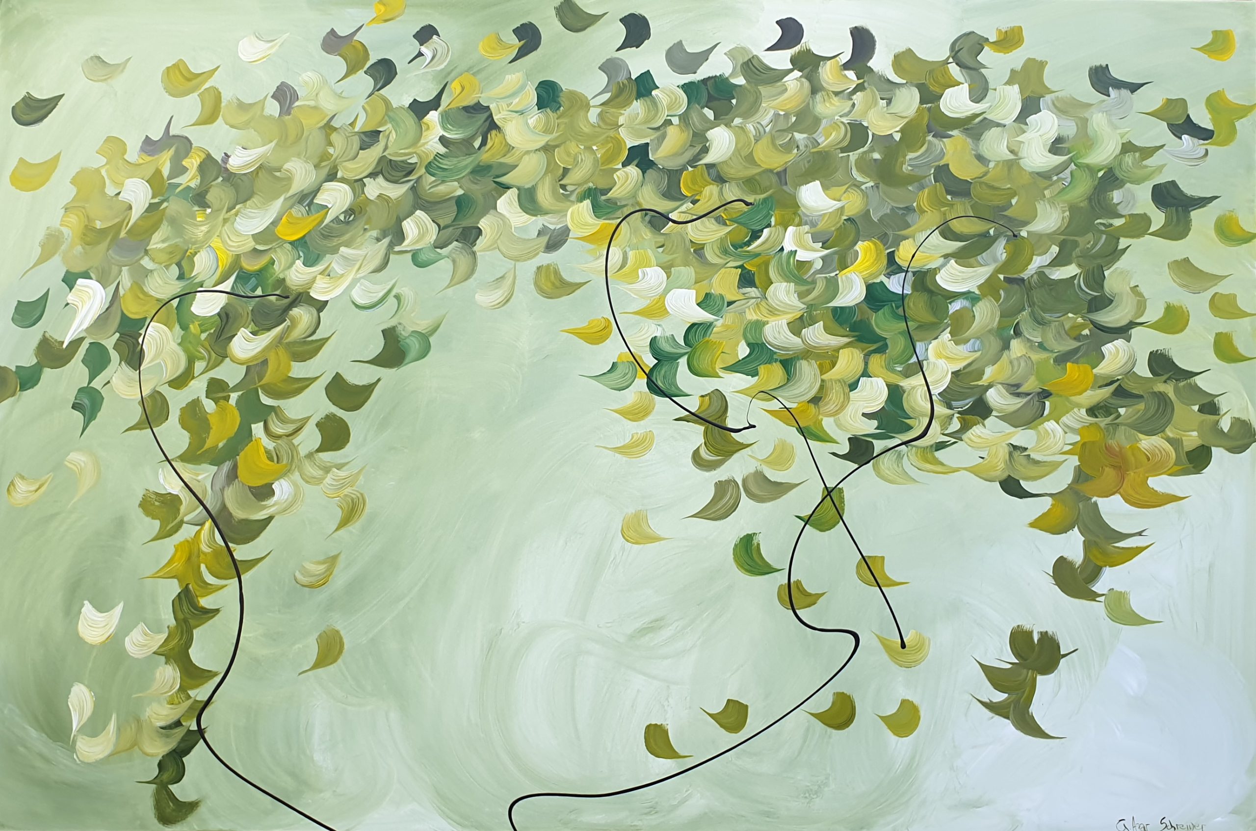 I view painting as sheer passion and feeling. Through my process I don’t seek to depict a set idea or subject, but instead I let scenes and dynamic movement emerge organically.