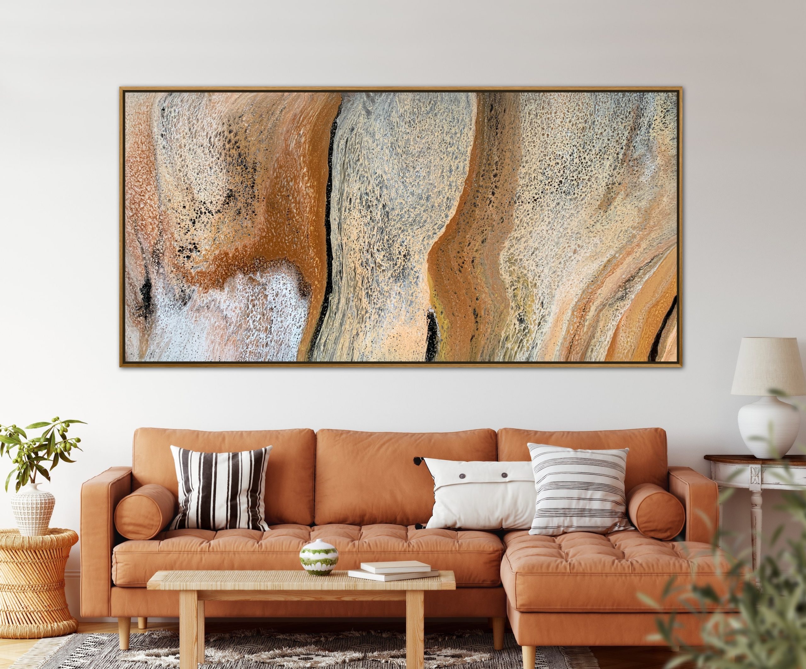 ‘In situ’ photos have been included to help with visualisation of the artwork in your home. In situ photos provided were created using the ArtStage app and may not be perfectly to scale. This being said, every effort has been made to represent the size of the art accurately but please read the dimensions of the artwork to ensure it fits your space perfectly. Where provided, photos of framed art are for illustrative purposes only.