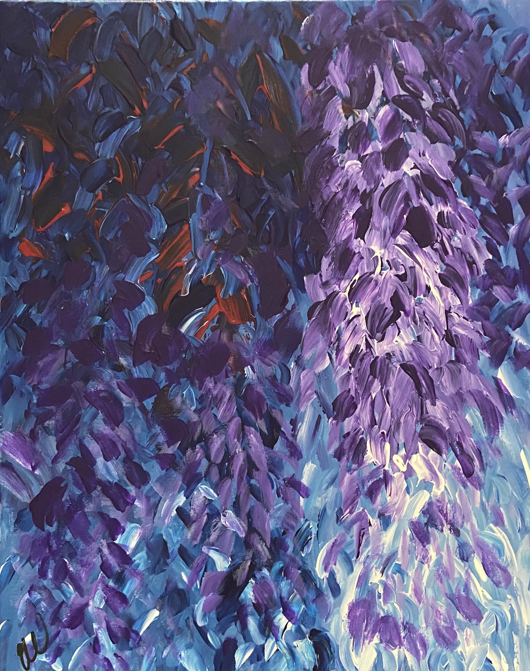 Splendour is an abstract painting of hanging flowers that are lush with deep colours, perfect to brighten up your home. Acrylic on canvas. Ready to hang.