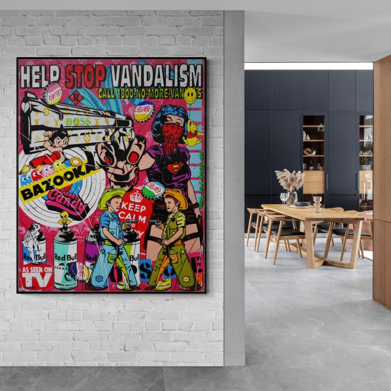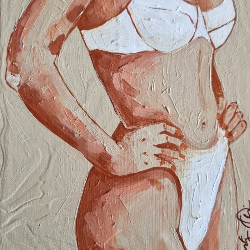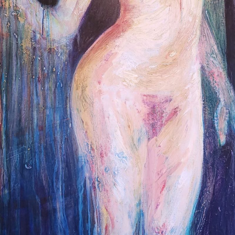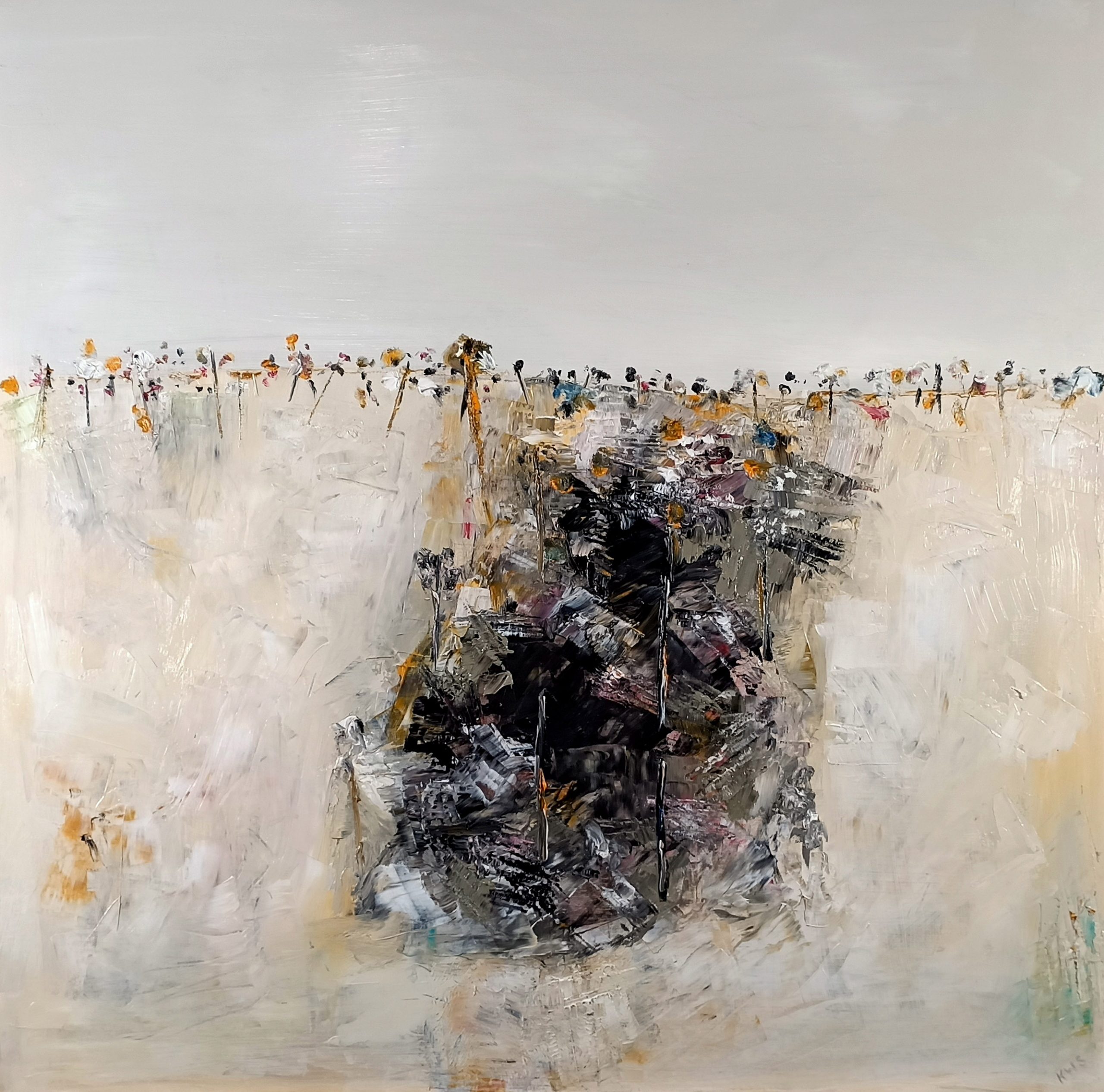 The aftermath of a spot fire scars the country hillside. The blackened earth provides a stark contrast in this abstract oil painting.