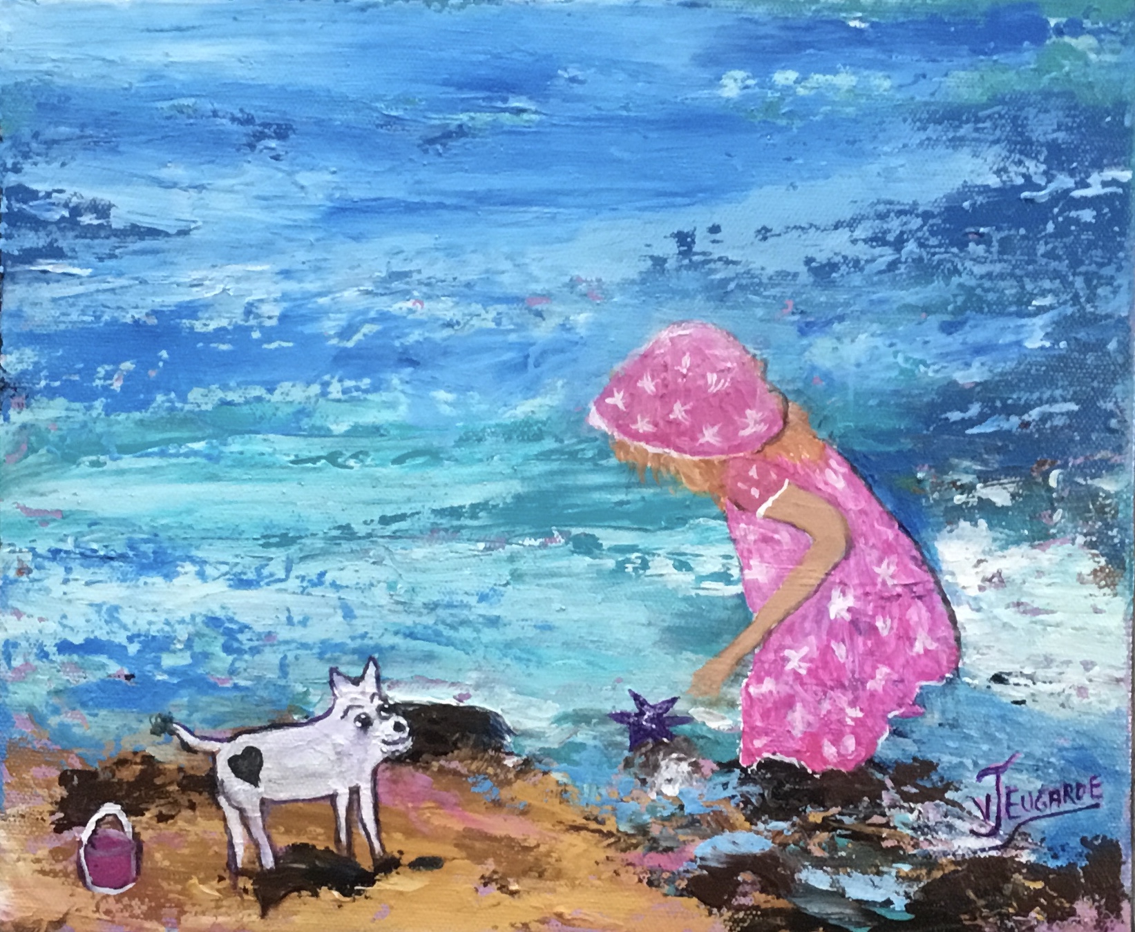 This one is made from my memories of always living by the sea, my children loved the outdoors and were always on the beach, my daughter was always accompanied by her furry friend and loved searching for precious shells and starfish. Just so lucky to live in Queensland and have access to our wonderful beach and bayside areas.