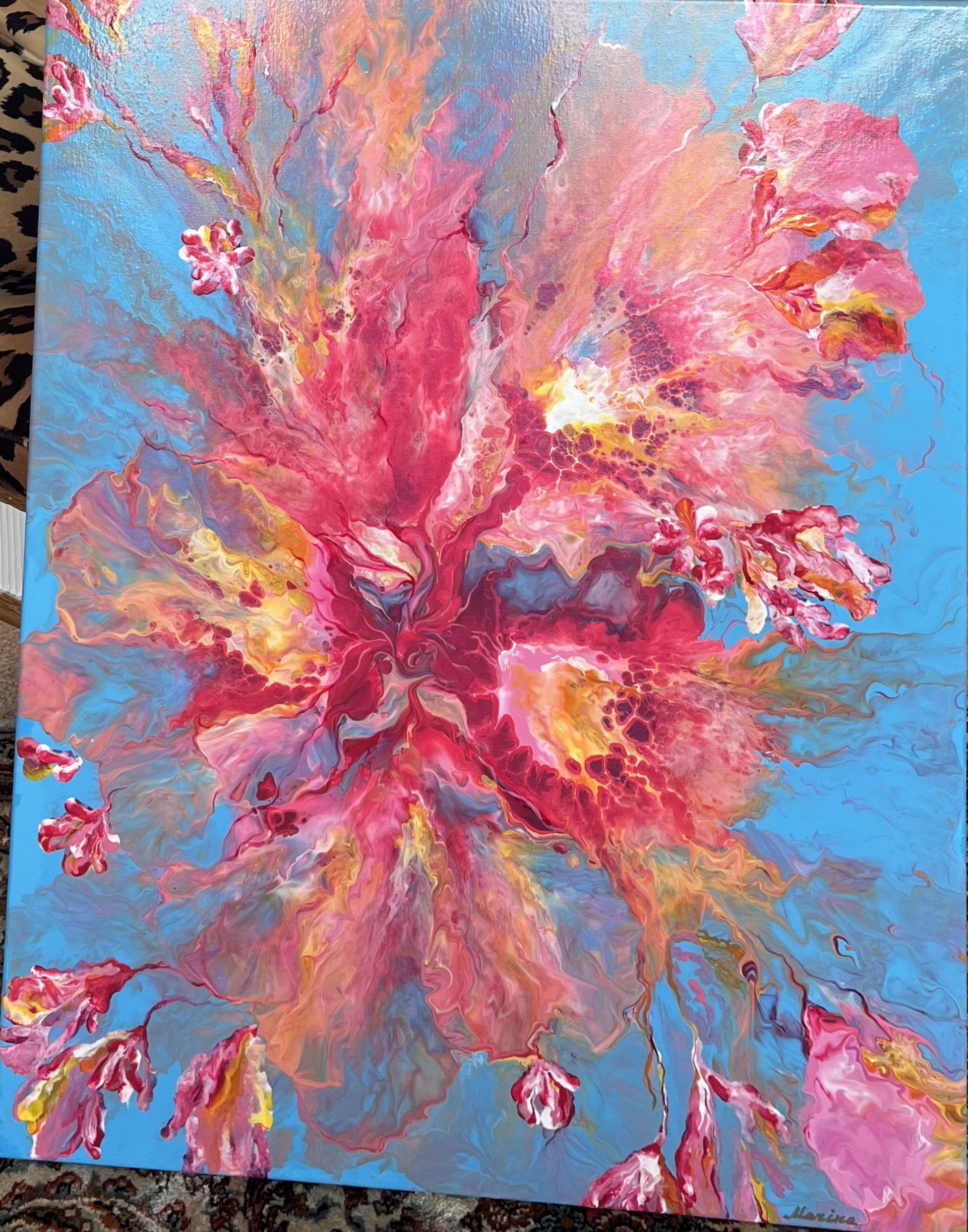 “Spring” is an expression of decorative wall art, individually hand-painted in Brisbane. Its theme was inspired by blue sky and spring blooms in Brisbane.