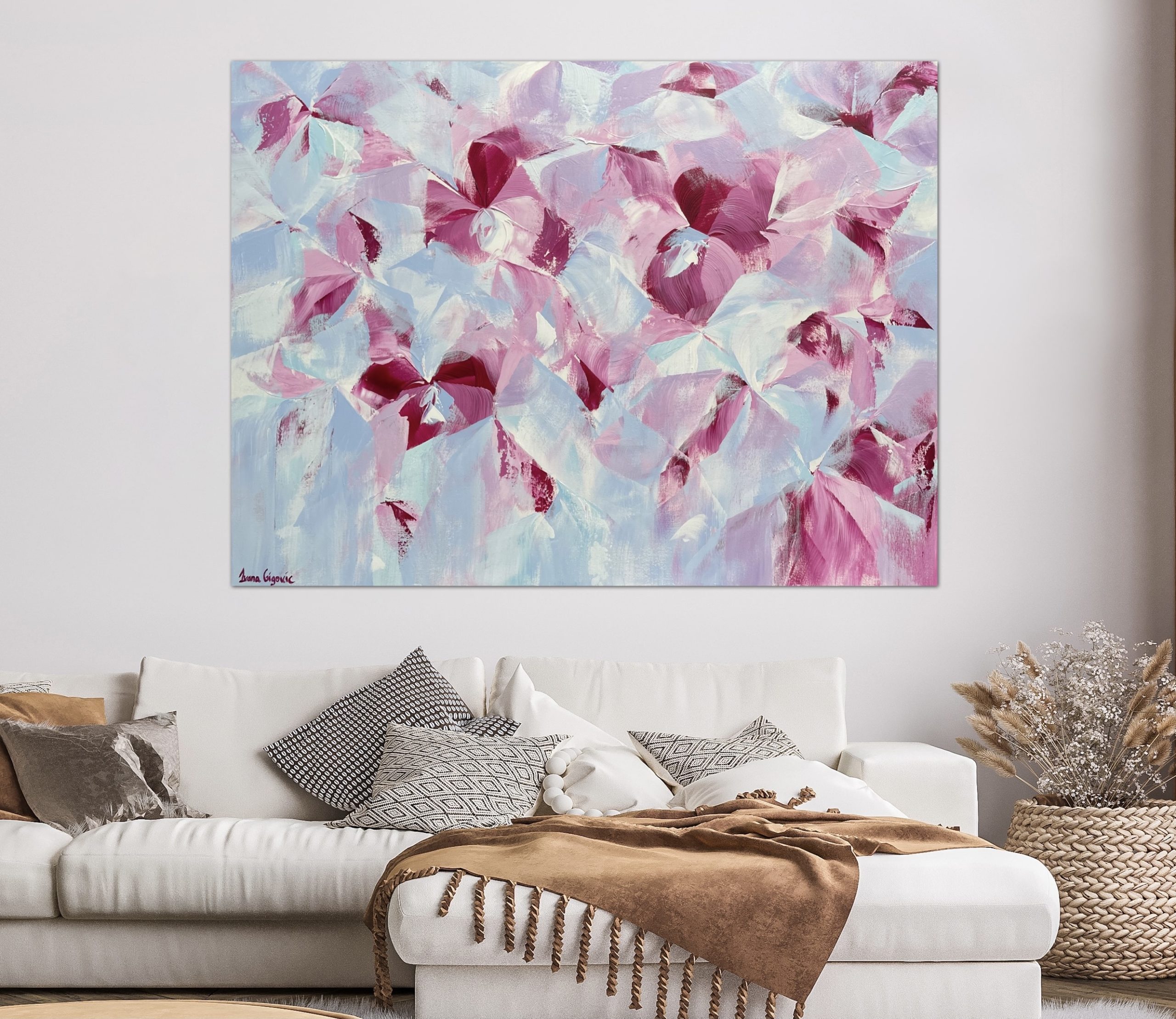 Spring is in the air! I was inspired by the beautiful flowers I see on my walks to create this piece. Spring flowers and blue skies are always a great way to start a day! This artworks brightens up any space and is a wonderful feature piece in any room.