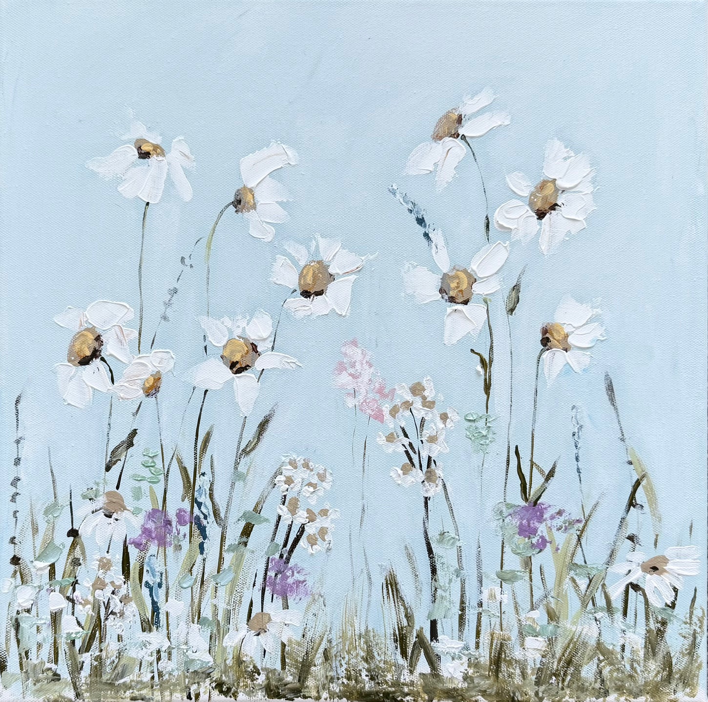 Painted with brush and palette knife using acrylics on stretch canvas.