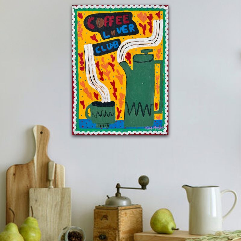 I love fresh bright colours of spring! This piece of artwork is done in many layers. The acrylic paint and ink are used for initial few layers, oil is used to create light branches. The edges are painted black, it’s ready to be displayed.