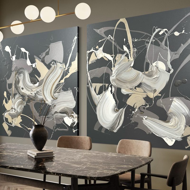 ‘Springtide’ is a sculptural triptych that captures stillness in motion — layered, spacious, and calm. The staggered layout and flowing forms create a gentle rhythm across the wall, inviting presence and pause.